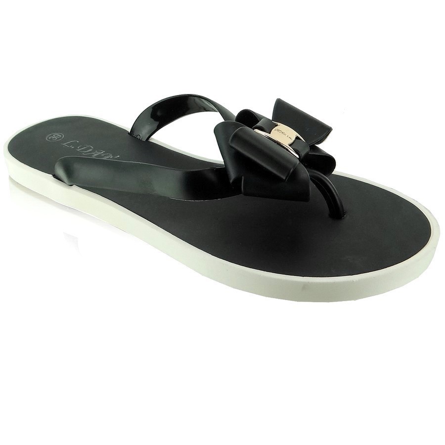 Dla kobiet, które cenią komfort chodzenia w japonkach przygotowaliśmy specjalną ofertę - oto japonki czarne na grubej podeszwie. Dużą zaletą tego obuwia jest mięsista podeszwa, która idealnie sprężynuje stopę podczas chodzenia. Dodatkowo japonki zdobione są dużą kokardą w kolorze obuwia ze stylową złotą klamrą.