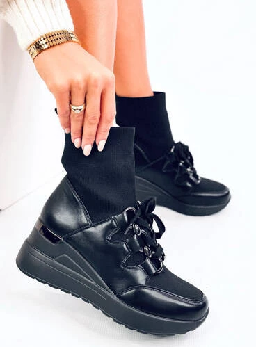 Botki na koturnie elastyczna cholewka KAYE BLACK