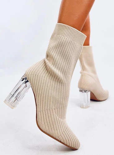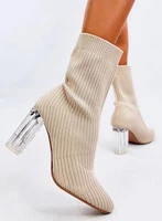 Botki skarpetkowe na przezroczystym obcasie DESTANI BEIGE