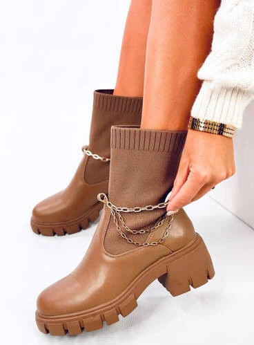 Botki skarpetkowe z łańcuchem SIMMY LT.KHAKI