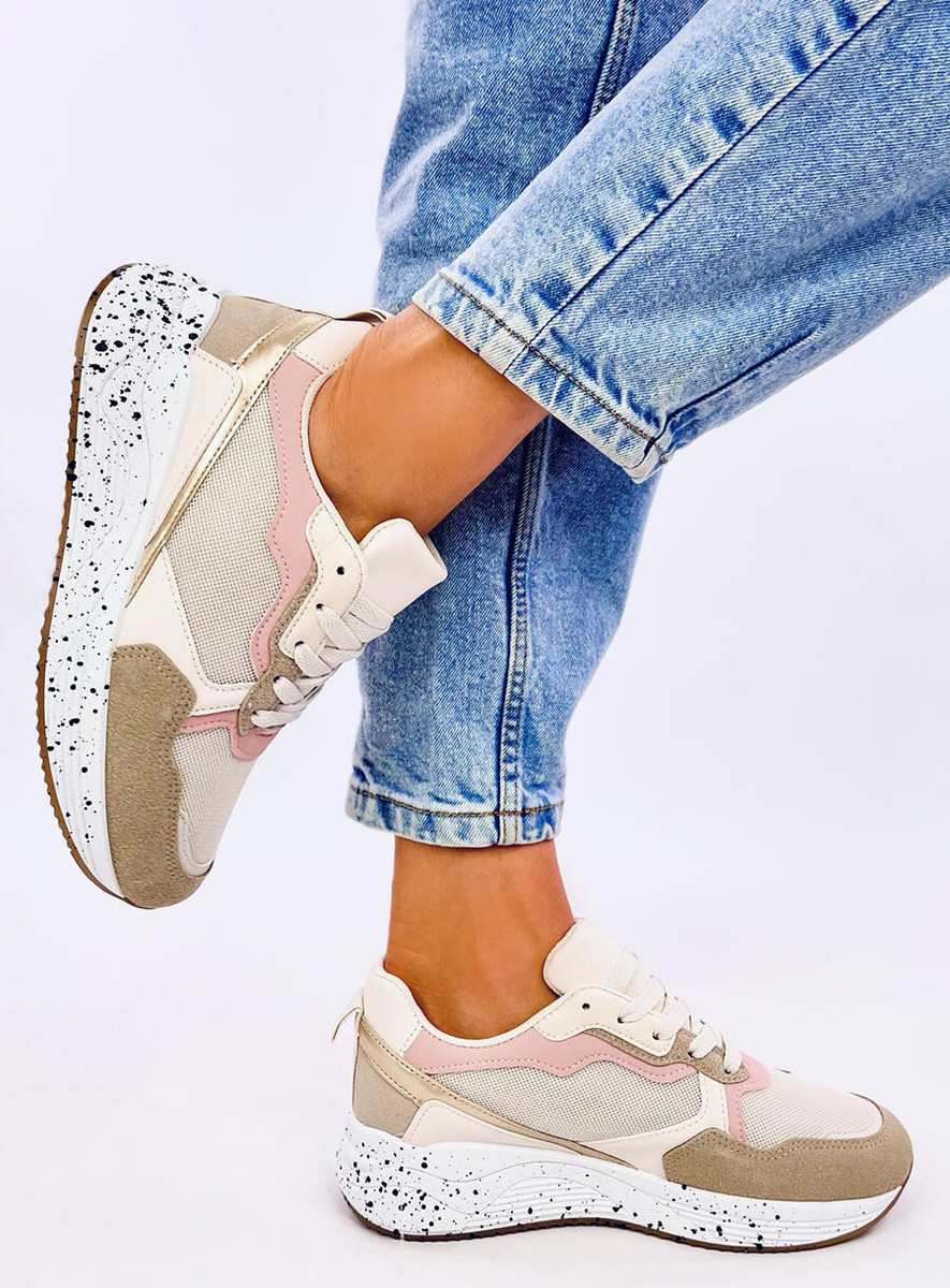 Buty sportowe - sneakersy na wysokiej podeszwie. Wyróżniają się klasycznym fasonem na oryginalnej, kropkowanej podeszwie, który zestawiono z najmodniejszymi dodatkami – wstawkami o motywie skóry węża oraz metalicznymi. Skuś się na odrobinę szaleństwa i już dziś zamów je buty! Wnętrze wyścielone jest tkaniną. Materiał zewnętrzny – skóra ekologiczna + tkanina + zamsz ekologiczny.
