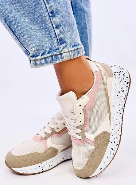 Buty sportowe - sneakersy na wysokiej podeszwie. Wyróżniają się klasycznym fasonem na oryginalnej, kropkowanej podeszwie, który zestawiono z najmodniejszymi dodatkami – wstawkami o motywie skóry węża oraz metalicznymi. Skuś się na odrobinę szaleństwa i już dziś zamów je buty! Wnętrze wyścielone jest tkaniną. Materiał zewnętrzny – skóra ekologiczna + tkanina + zamsz ekologiczny.