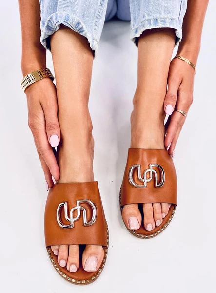 Licowe klapki damskie na płaskiej podeszwie. Efektowna ozdoba oraz błyszcząca lamówka przyciągną spojrzenia... W takich butach nie tylko poczujesz się modnie i stylowo, ale też wygodnie i pewnie w każdej sytuacji - nie czekaj i zamów je już dziś : ) Materiał zewnętrzny - skóra ekologiczna.