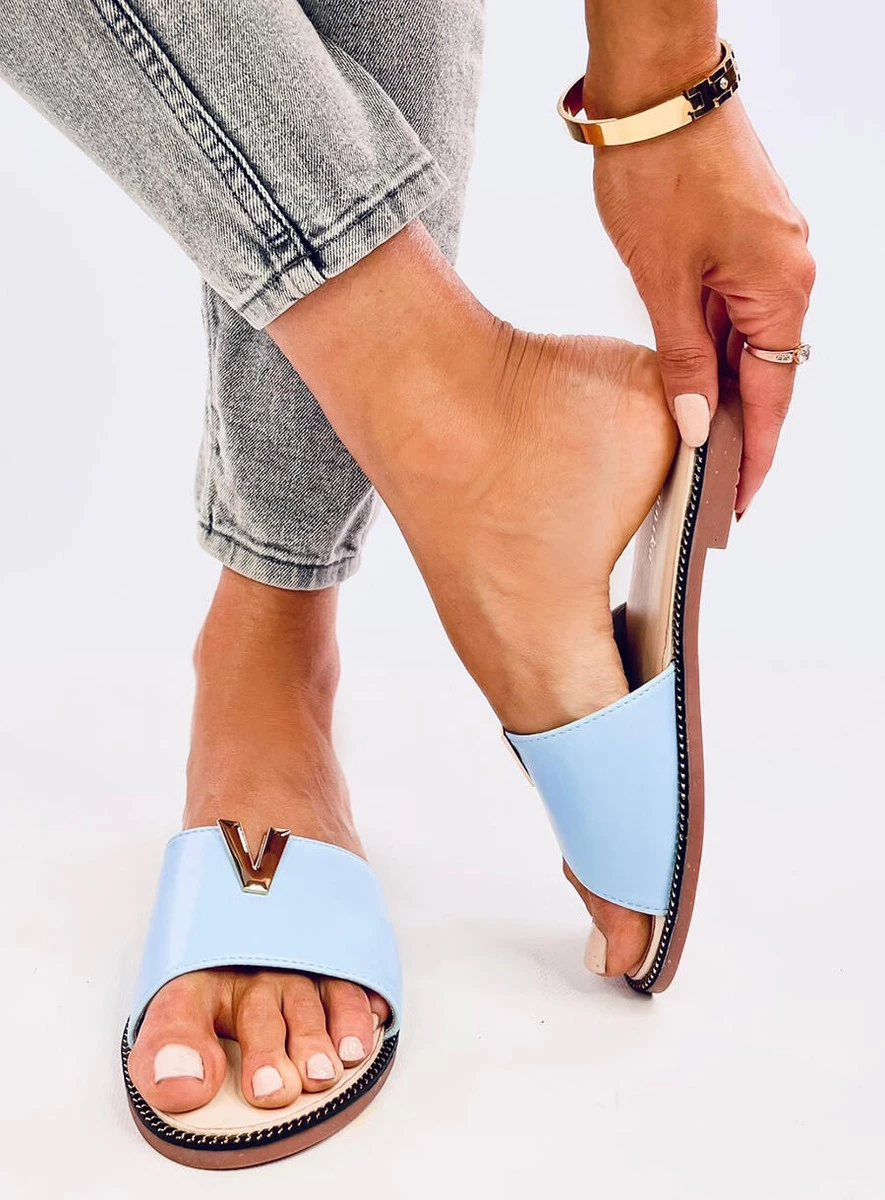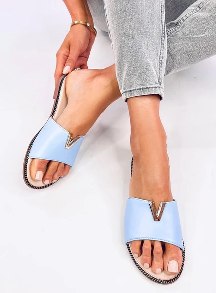 Klapki damskie licowe. Złota ozdoba w kształcie litery V nadaje im ciekawy akcent, który podkreśla ich wyjątkowy styl. Już dziś powinny być Twoje! Materiał zewnętrzny – skóra ekologiczna.