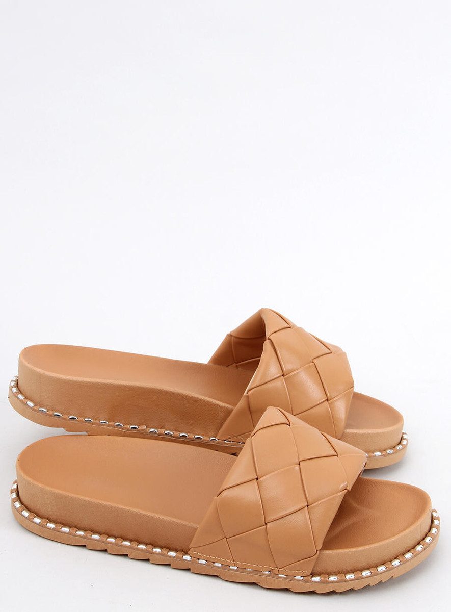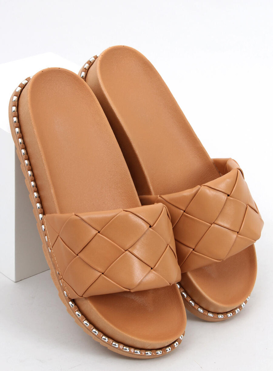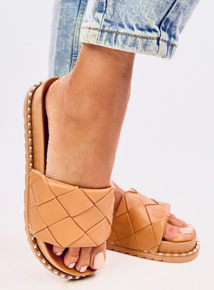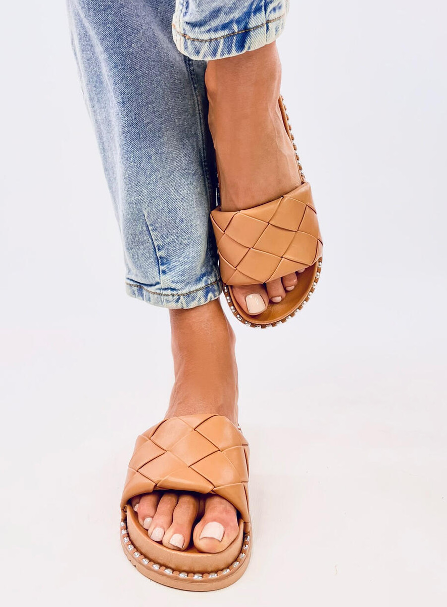 Klapki damskie licowe. Wzrok przyciąga szeroki, pleciony pasek oraz najmodniejsza wysoka podeszwa wysadzana ćwiekami. To patent na wygodę, a ponadto modowy hit sezonu : ) Nie czekaj i zamów je już dziś! Materiał zewnętrzny – skóra ekologiczna.