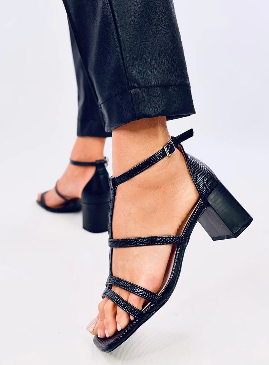 Sandałki damskie na niskim obcasie. Model ma najmodniejszy, kwadratowy fason o tłoczonym wykończeniu, które nadaje butom charakteru. Szeroki obcas o wysokości 5,5 cm zadba o Twój komfort podczas chodzenia, a regulowane zapięcie subtelnie podkreśli kostkę... Nie czekaj i zamów je już dziś! Materiał zewnętrzny – skóra ekologiczna.
