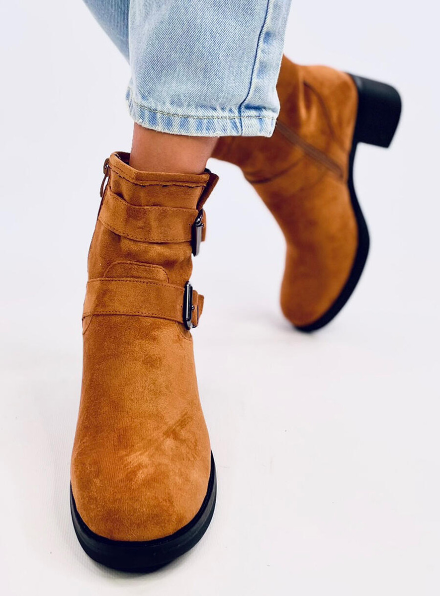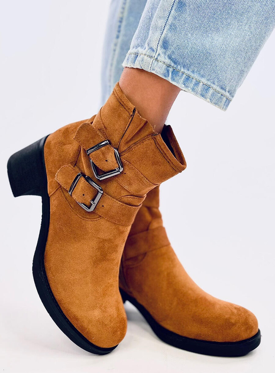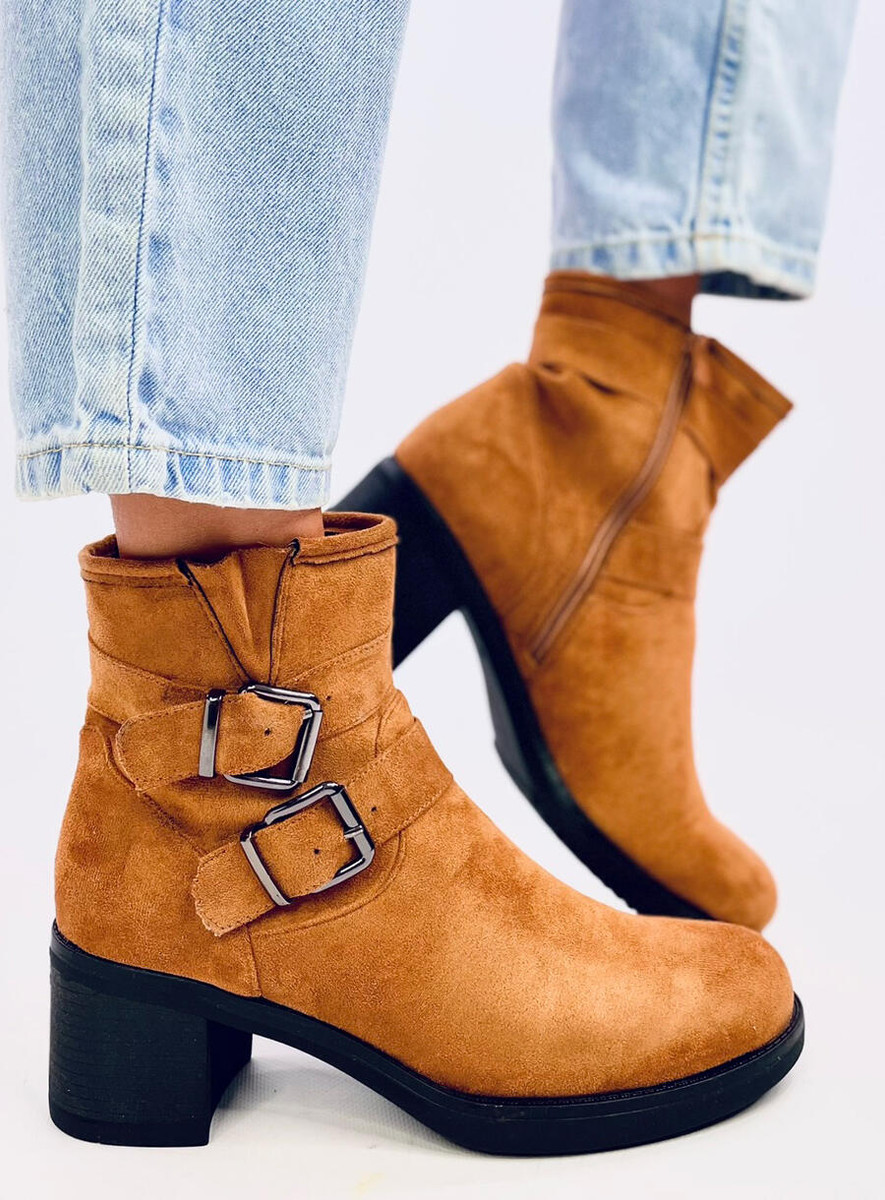 Zamszowe botki damskie. Szeroki obcas o wysokości 6,5 cm jest nie tylko wygodny, ale również modny w tym sezonie, a zapięcie na zamek błyskawiczny z boku cholewki to bardzo praktyczne rozwiązanie. Charakteru dodają im efektowne klamerki. Sięgnij po nie już teraz! Wykonane są z bardzo milutkiego w dotyku zamszu ekologicznego, a wnętrze wyścielone jest delikatnym futerkiem.