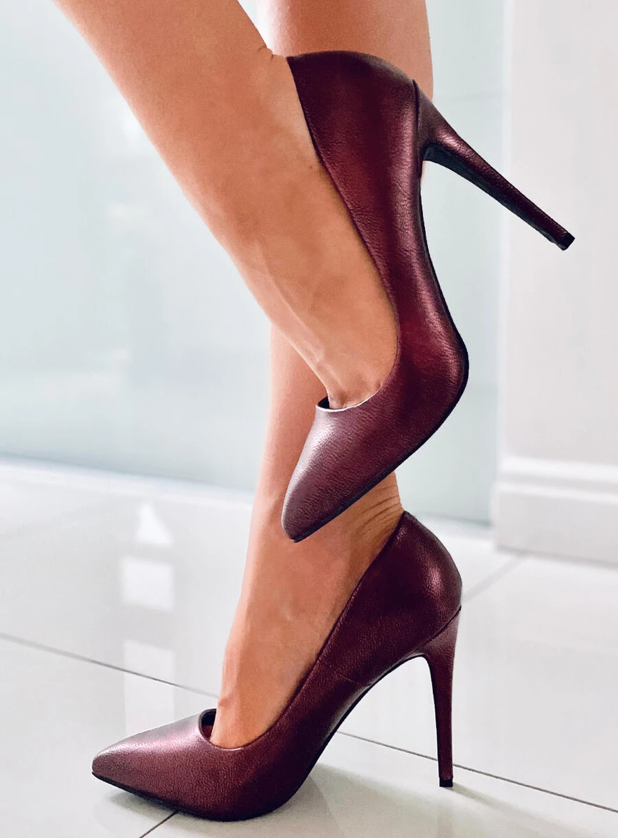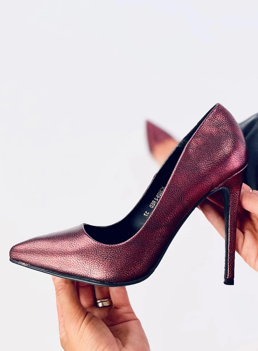Licowe szpilki damskie. Mają nietuzinkową fakturę o opalizującym wykończeniu... Przepięknie się prezentują! Fason ze zwężającymi się noskami jest nie tylko modny, ale również wyjątkowo zgrabny, a obcas o wysokości 12 cm zapewni bajecznie długie nogi! Przekonaj się sama, że zasługują, by znaleźć się również w Twojej garderobie na wyjątkowe okazje... Materiał zewnętrzny - skóra ekologiczna.