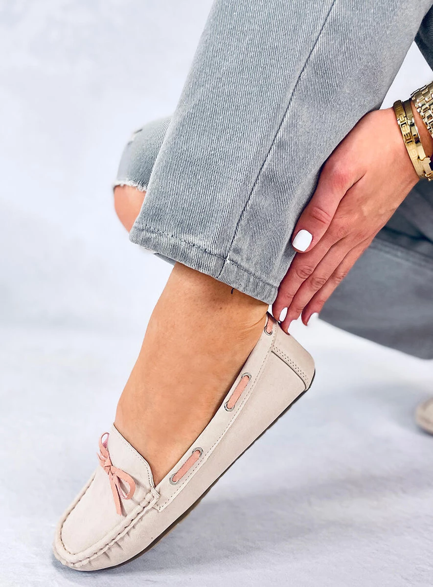 Mokasyny damskie w klasycznym wydaniu! Idealne zestawienia kolorystyczne prezentują się niezwykle stylowo. Buty wyróżniają także charakterystyczne dla mokasynów przeszycia, dzięki którym fason zyskuje na wyrazistości. Dzięki tym butom dodasz swojej stylizacji elegancji w nowoczesnym wydaniu. Model ten jest niesłychanie wygodny, a także komfortowy za sprawą wkładki ze skóry naturalnej. Materiał zewnętrzny – skóra ekologiczna.