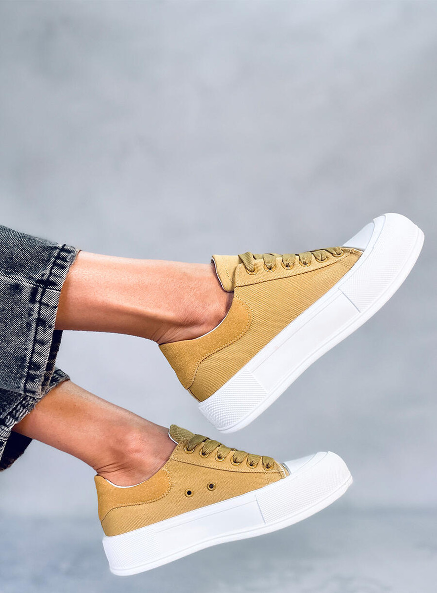 Trampki damskie na platformie o wysokości 4 cm. Model wyróżnia oryginalna gruba podeszwa, która z pewnością doda centymetrów : ) Nie dość, że świetnie wyglądają to jeszcze są mega wygodne! Zamów je już dziś, bo to absolutny must have tego sezonu :) Materiał zewnętrzny - tkanina + zamsz ekologiczny.