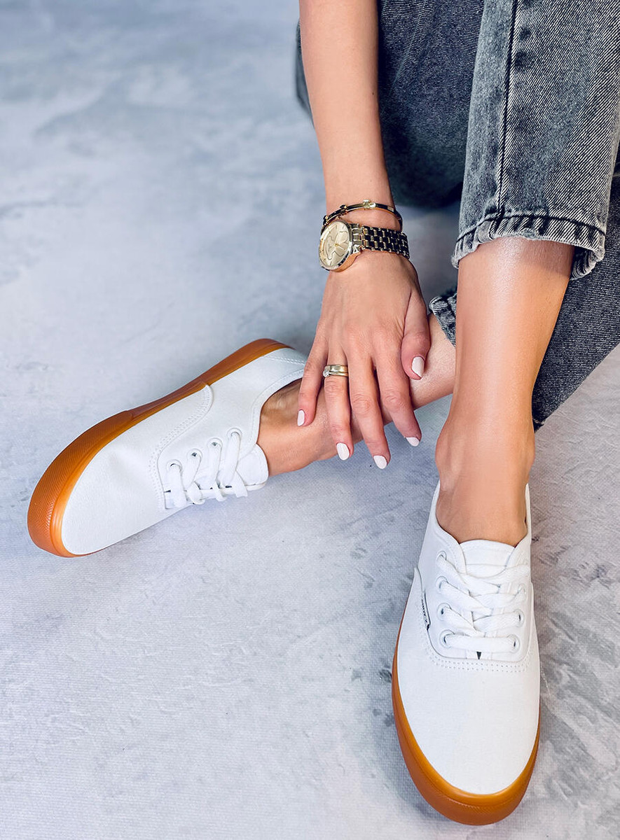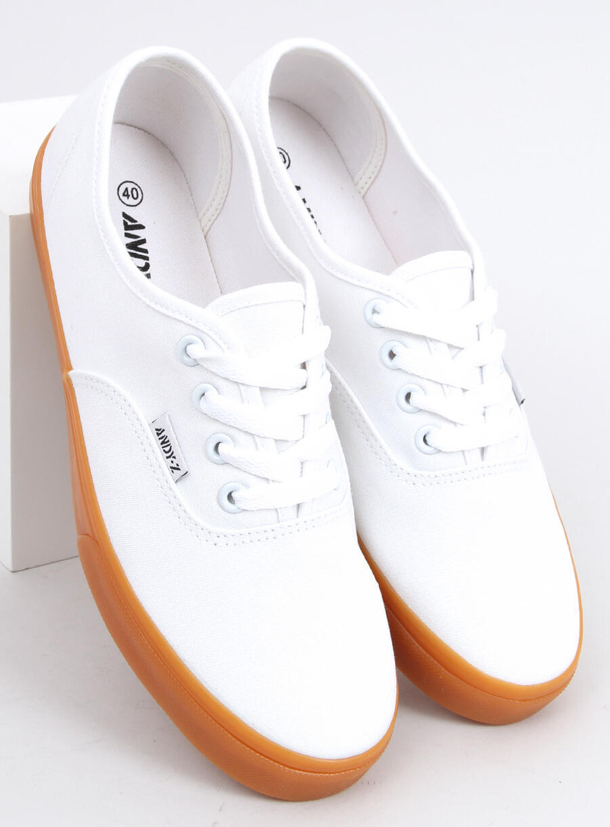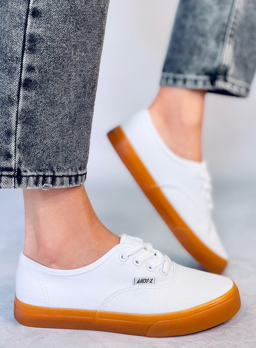 Płócienne trampki damskie sznurowane. Mają klasyczny fason, który zawsze jest na topie : ) Jeśli zależy Ci na wygodzie i byciu w zgodzie z najnowszymi trendami to ten model jest właśnie dla Ciebie! Wnętrze butów wyścielone jest tkaniną. Materiał zewnętrzny -płótno.