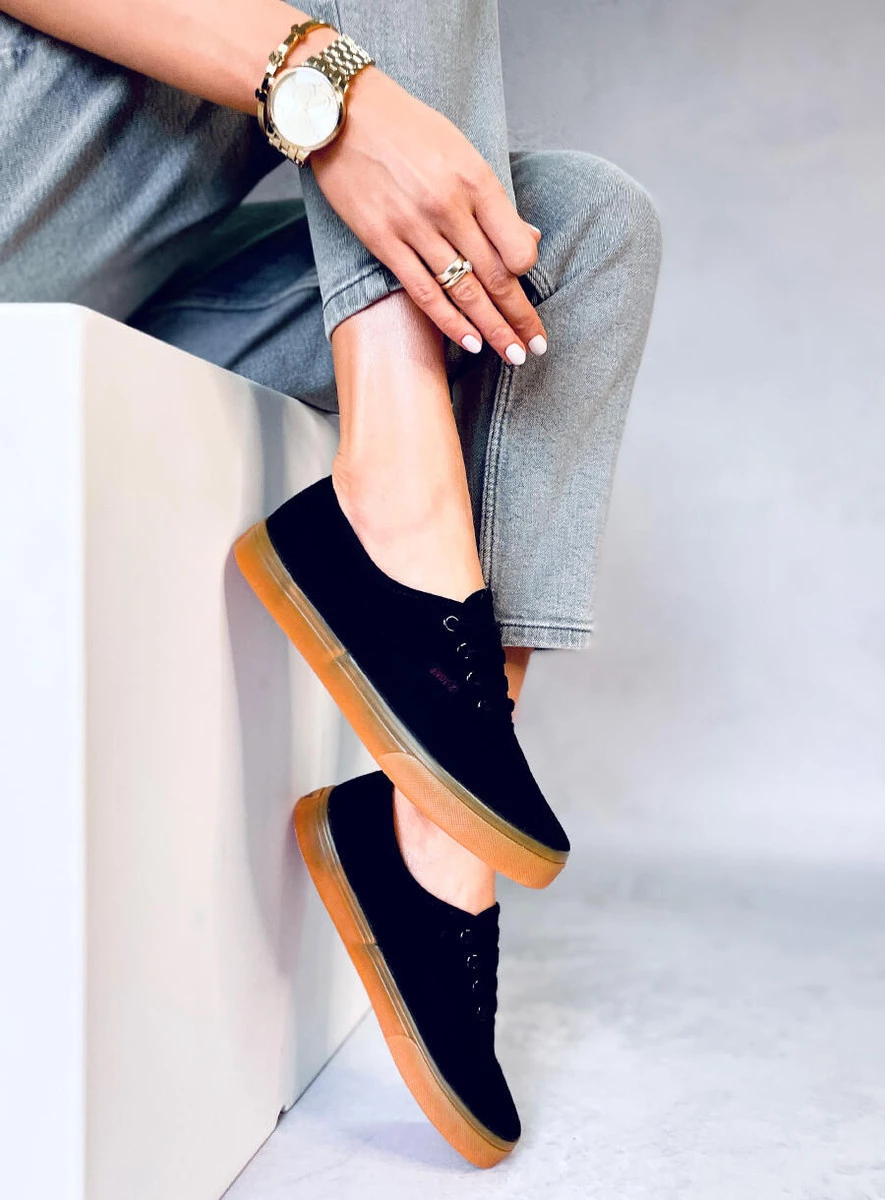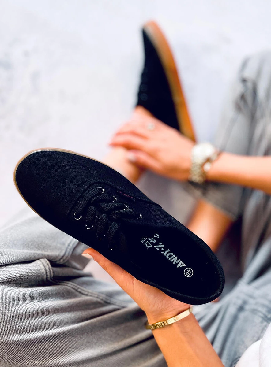 Płócienne trampki damskie sznurowane. Mają klasyczny fason, który zawsze jest na topie : ) Jeśli zależy Ci na wygodzie i byciu w zgodzie z najnowszymi trendami to ten model jest właśnie dla Ciebie! Wnętrze butów wyścielone jest tkaniną. Materiał zewnętrzny -płótno.
