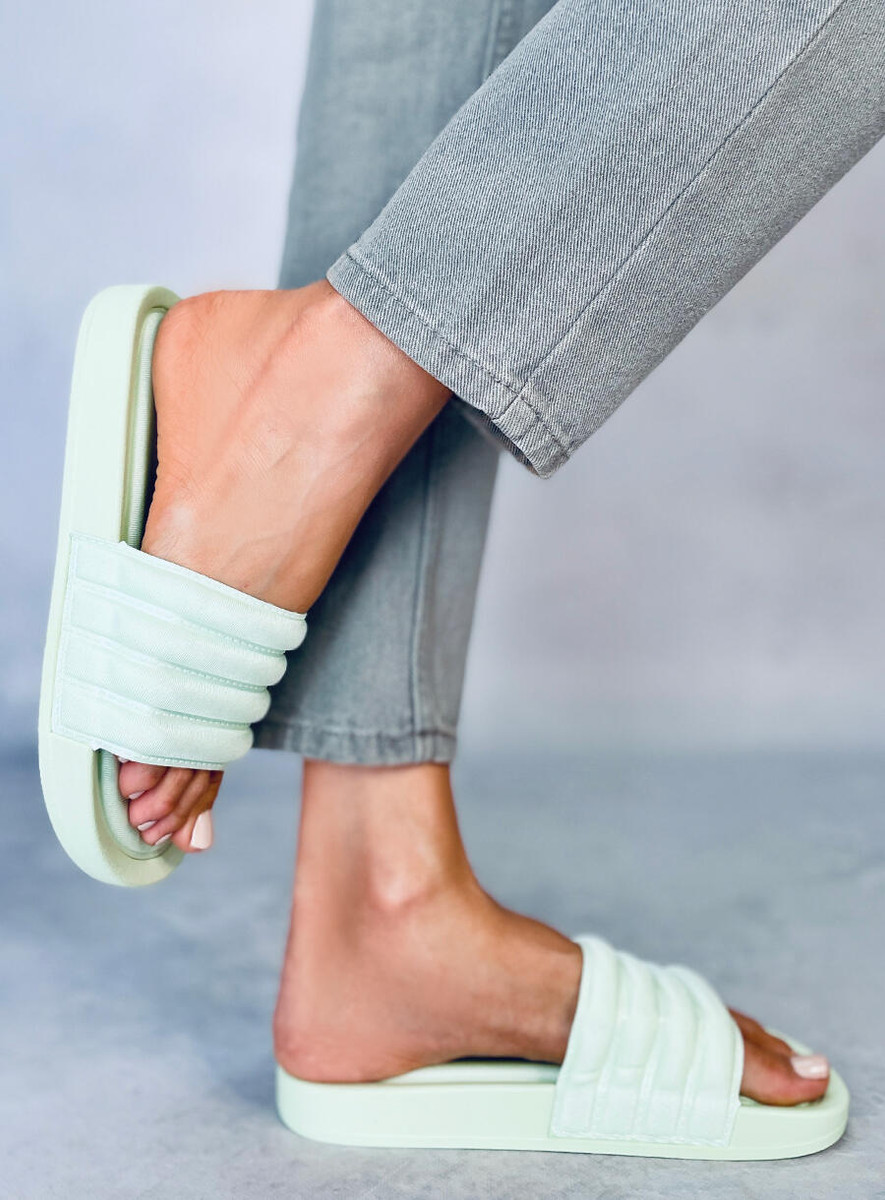 Klapki damskie z efektownym pikowaniem idealnie wpisują się w trendy tego sezonu. Gumowa podeszwa z miękką poduszeczką zapewnia wygodę i komfort! Jesteśmy przekonane, że te klapki spełnią Twoje oczekiwania : ) Materiał zewnętrzny – tkanina.