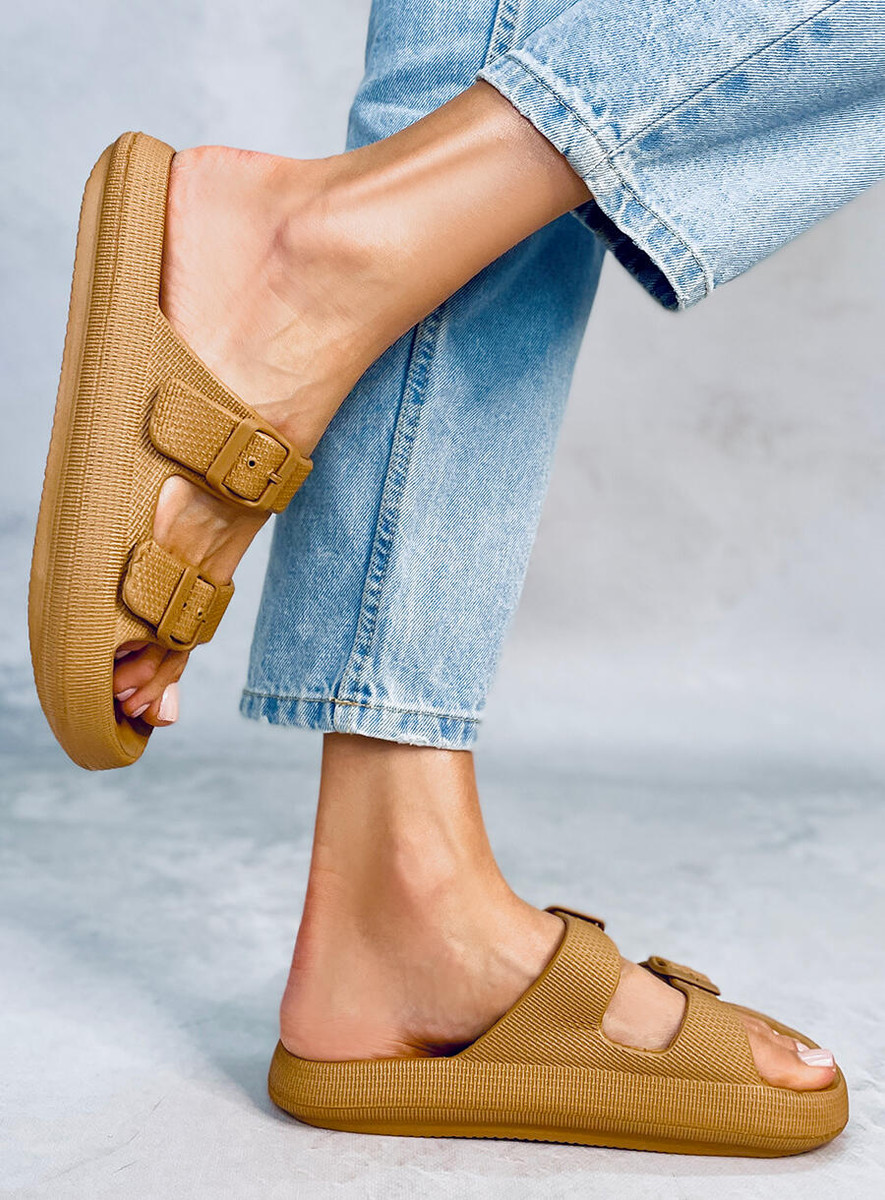 Gumowe klapki damskie. Są wyjątkowo lekkie i mają paski z możliwością regulacji, które świetnie trzymają stopę. To patent na wygodę, więc nie czekaj i zamów je już dziś - nie pożałujesz! Materiał zewnętrzny - guma.
