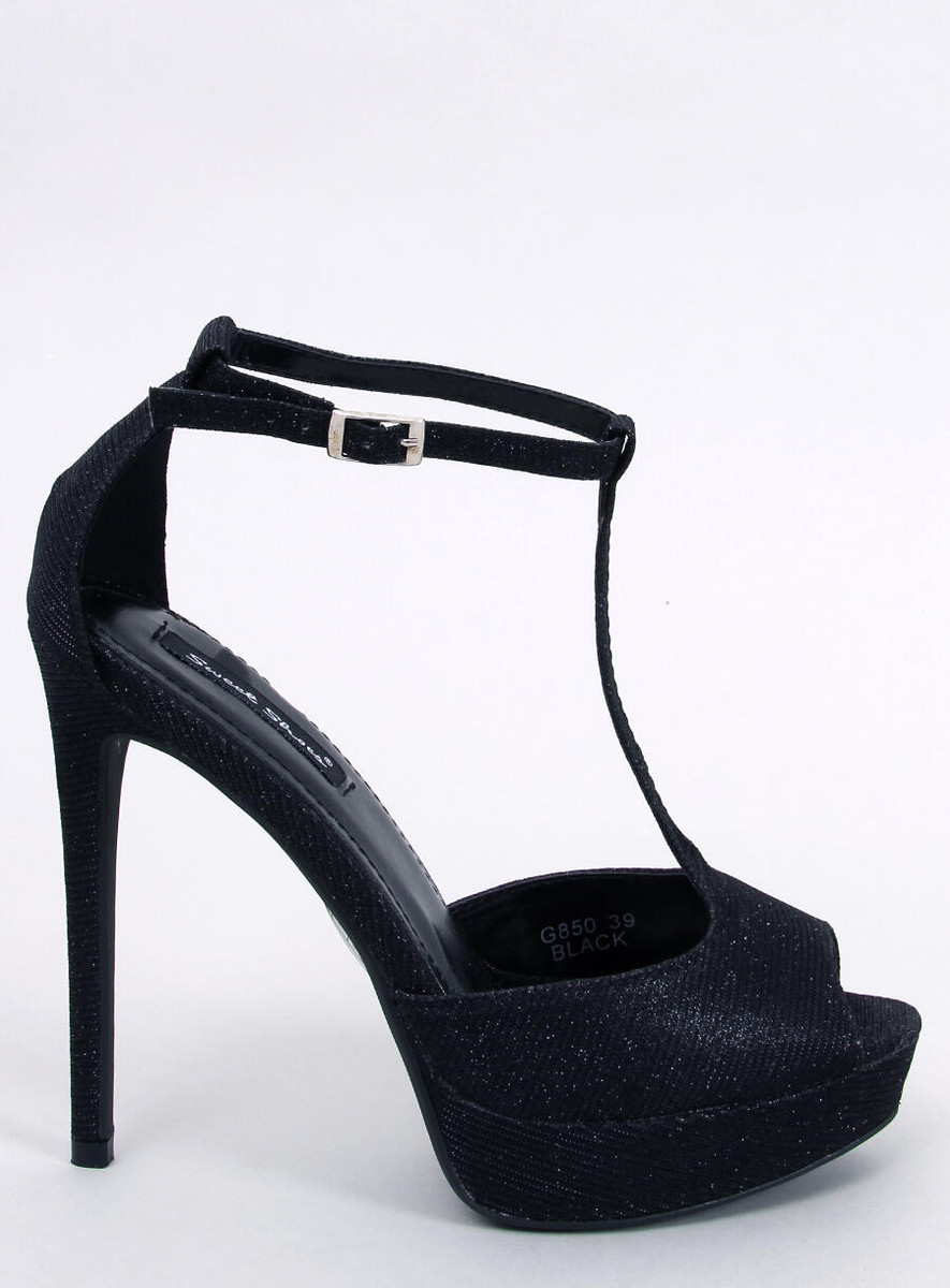 Klapki na obcasie eleganckie BLACK LINT