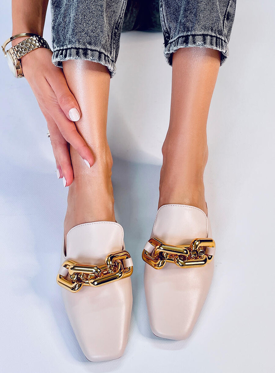 Opinie o Klapki z łańcuchem FORTUNE BEIGE