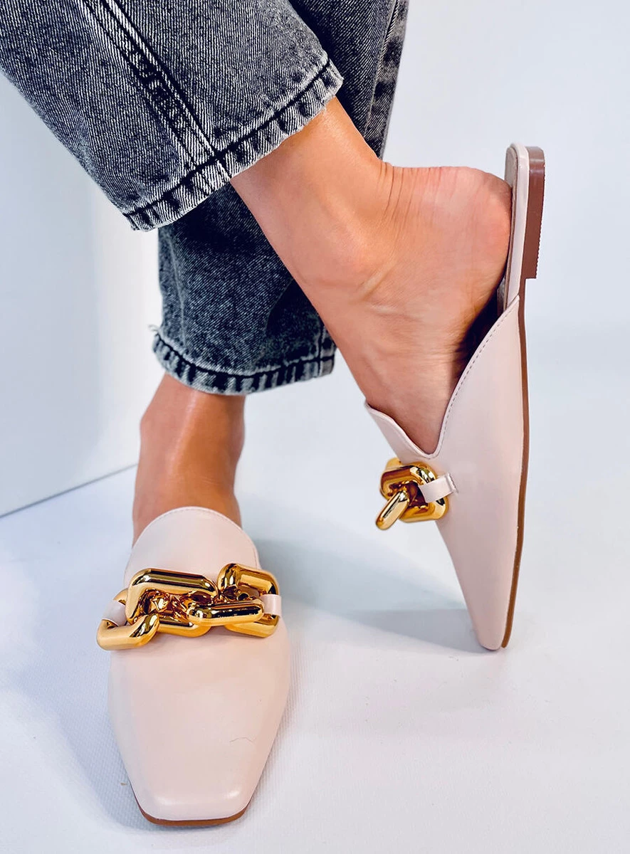 Opinie o Klapki z łańcuchem FORTUNE BEIGE