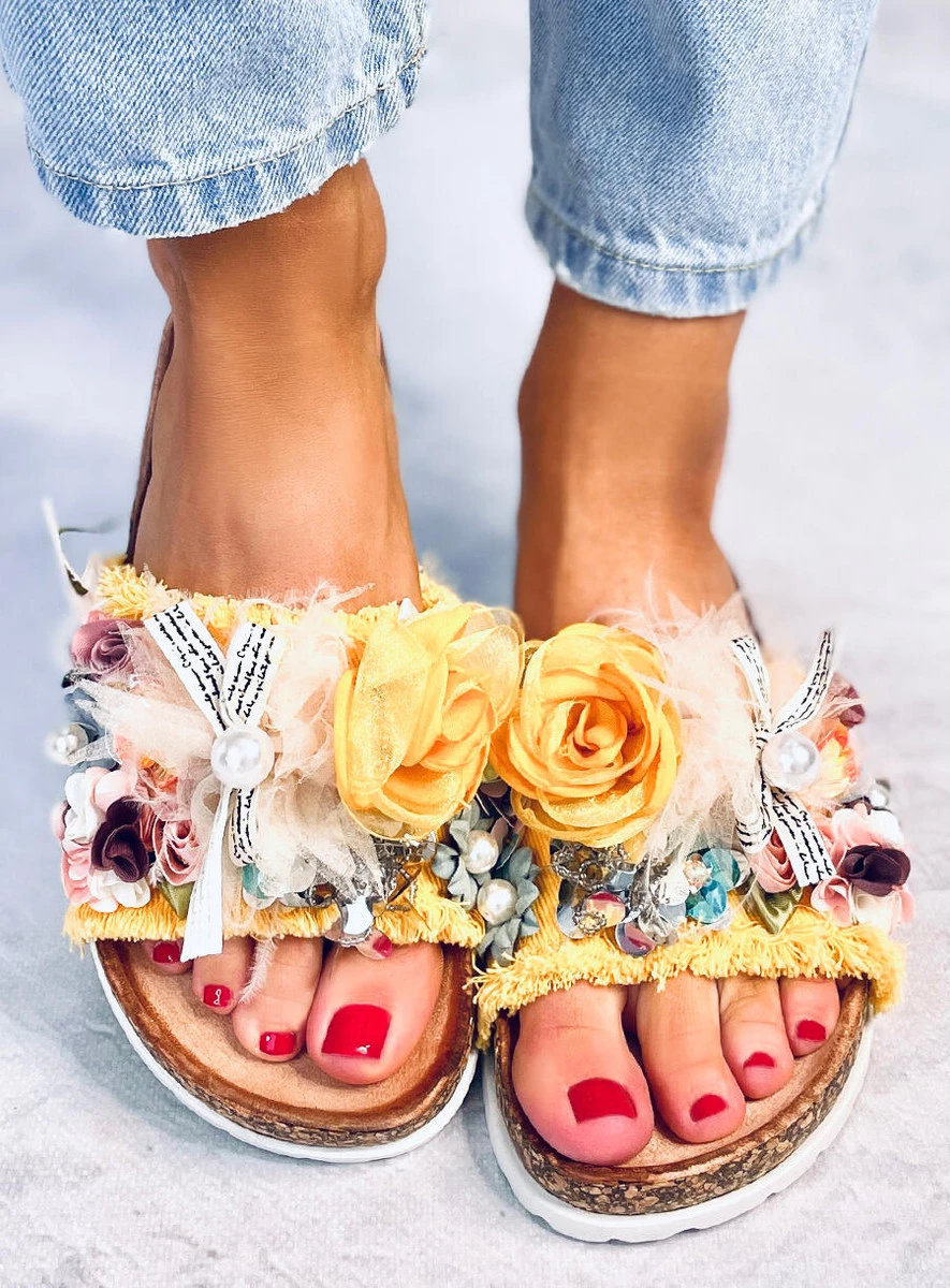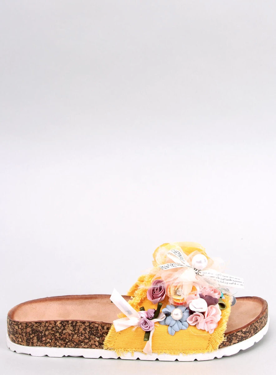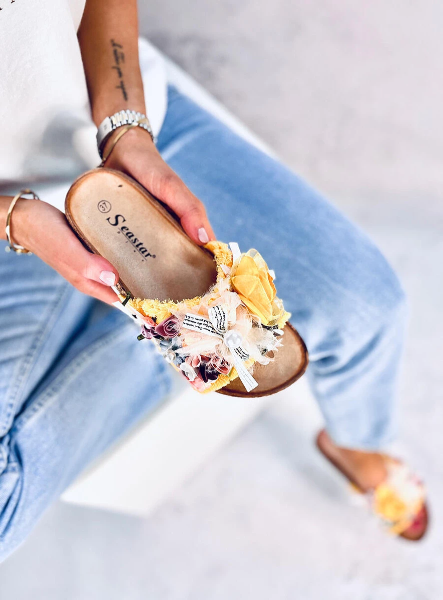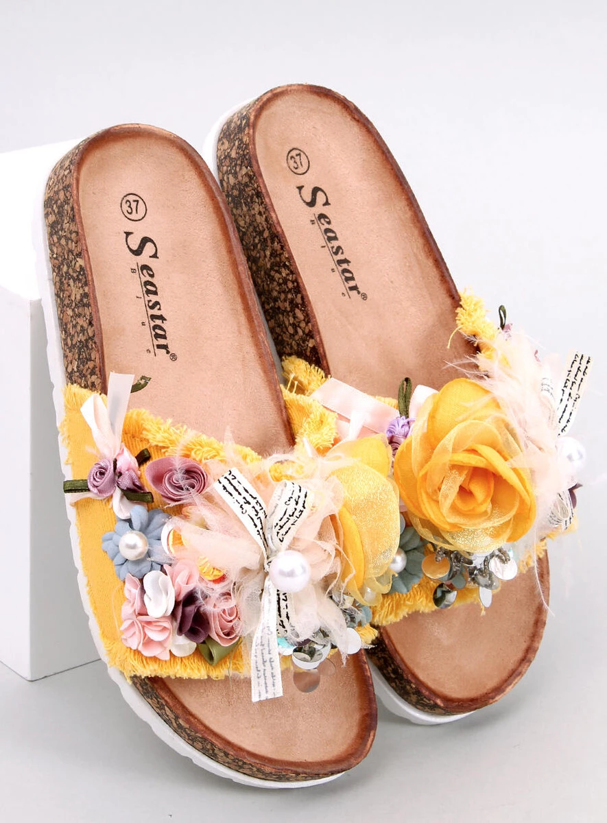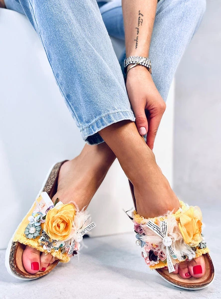 Korkowe klapki z kwiatami CIRCUS YELLOW