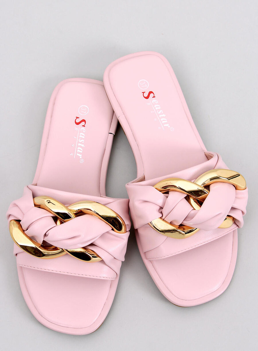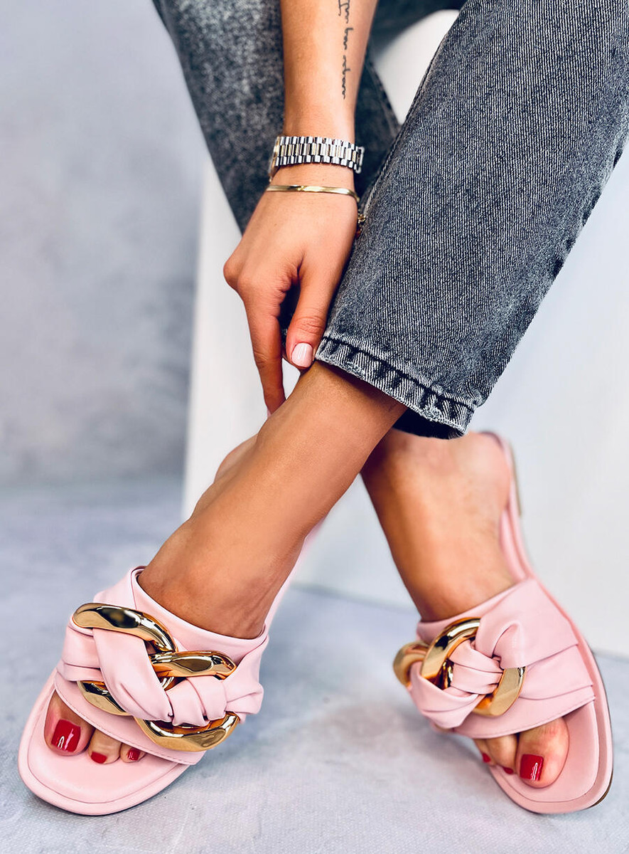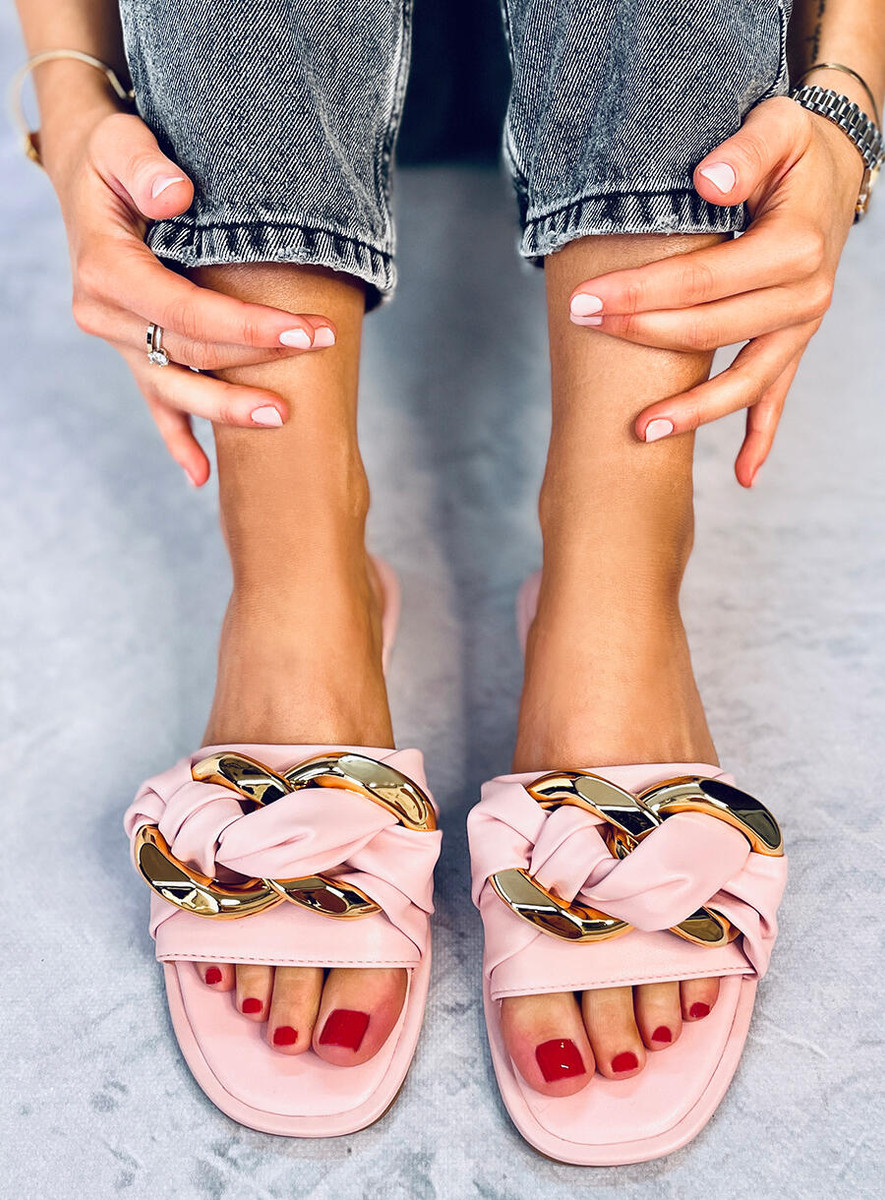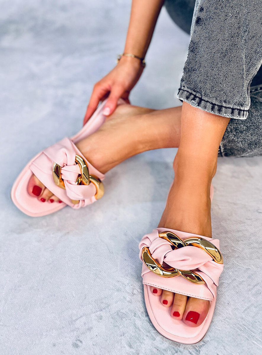 Opinie o Klapki z łańcuchem TOBIN PINK