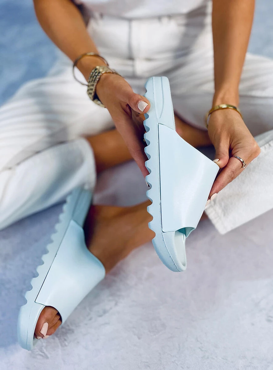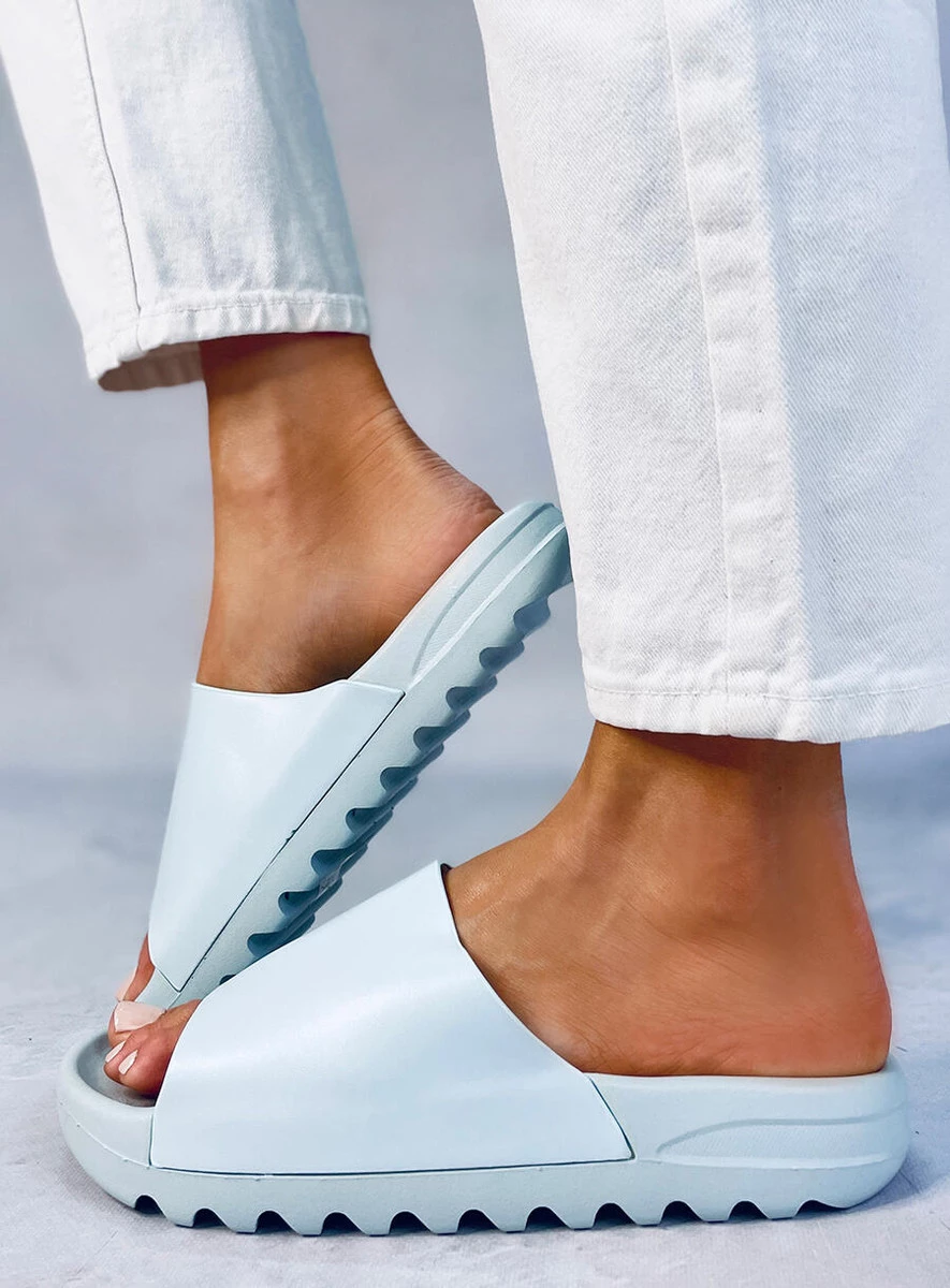 Wygodne klapki damskie na gumowej, ząbkowanej podeszwie. Szeroki pas świetnie trzyma stopę, a wkładka wewnętrzna jest dobrze wyprofilowana - chodzenie w nich to sama przyjemność : ) To doskonałe buty na lato! Materiał zewnętrzny - skóra ekologiczna.