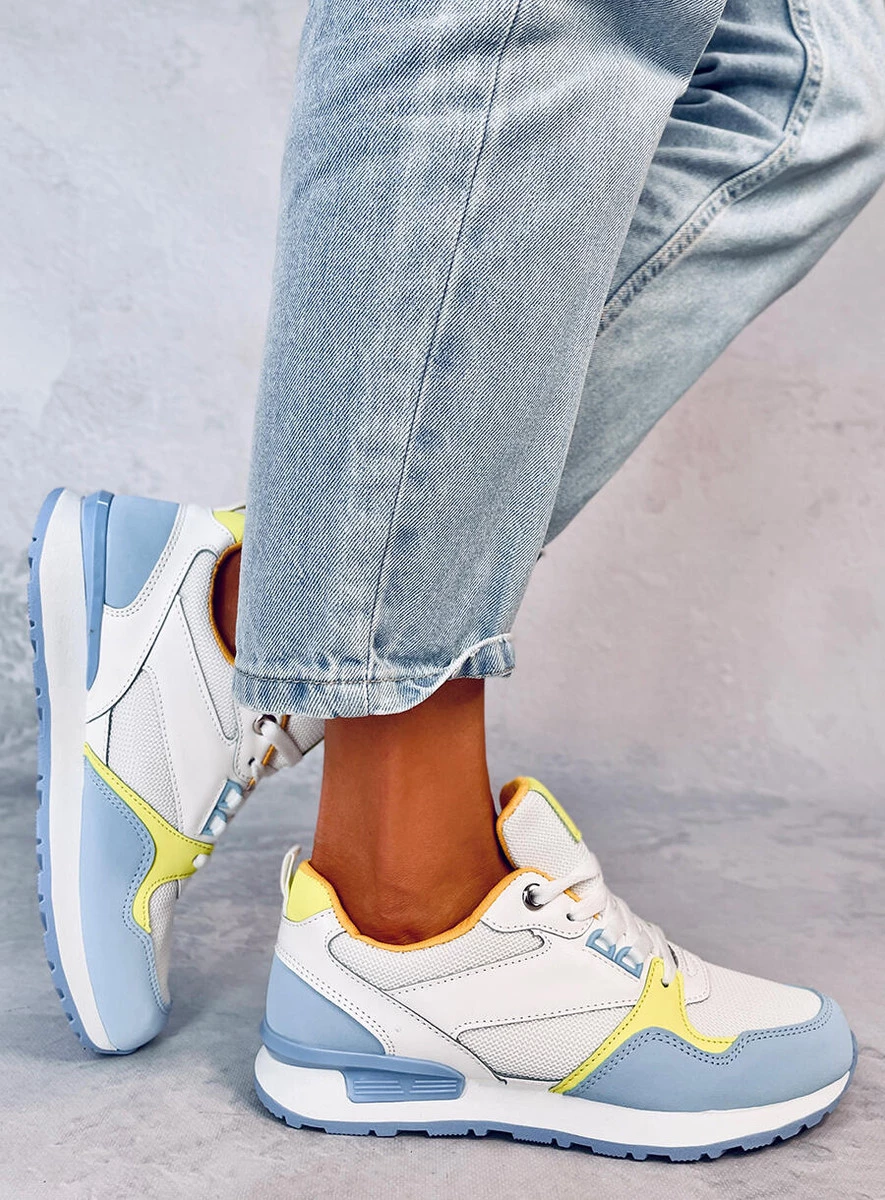 Sznurowane buty sportowe damskie - sneakersy. Model charakteryzuje klasyczny fason z najmodniejszymi, kolorowymi dodatkami... Świetnie sprawdzą się w wielu miejskich stylizacjach - sprawdź sama z czym najlepiej się komponują : ) Wnętrze butów wyścielone jest tkaniną. Materiał zewnętrzny – skóra ekologiczna + zamsz ekologiczny + tkanina.