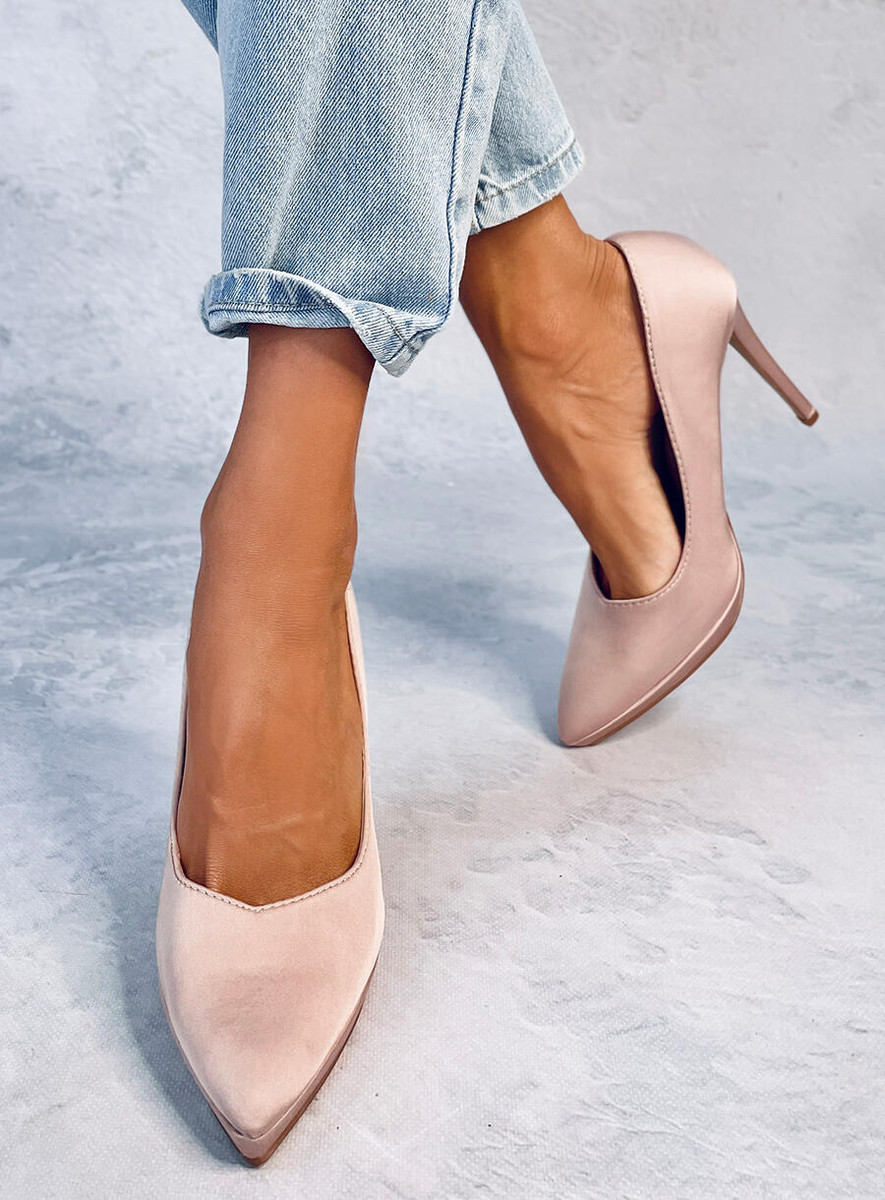 Wyjątkowe czółenka damskie na szpilce. Jeśli lubisz przyciągać spojrzenia to te buty o satynowym wykończeniu są stworzone dla Ciebie! Obcas o wysokości 12 cm oraz platforma sprawią, że Twoje nogi będą bajecznie długie, a zwężające się noski są zawsze na topie. Nie czekaj : ) Materiał zewnętrzny - tkanina satynowa.