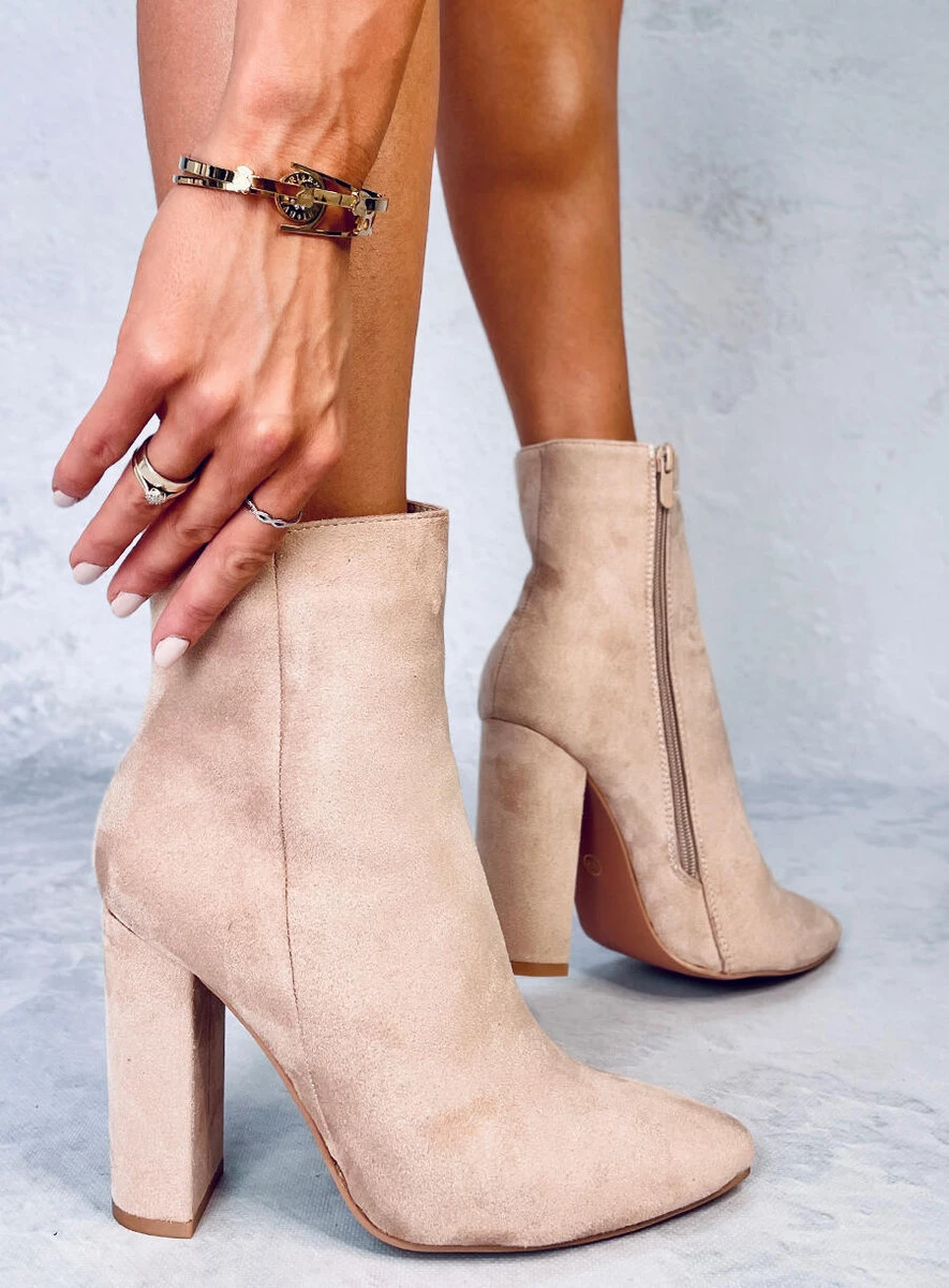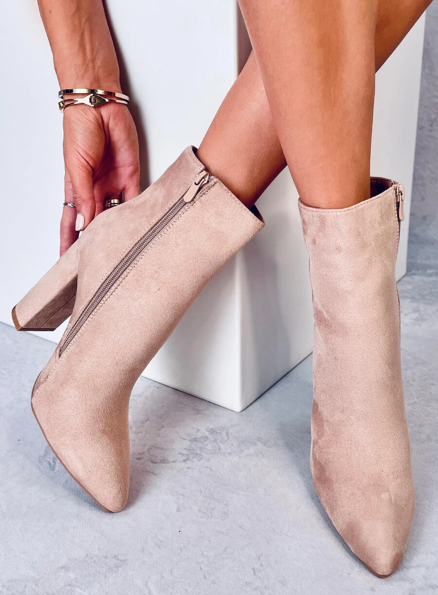 Zamszowe botki damskie klasyczne. Kobiecy fason tego modelu niewątpliwie dopełnia obcas - słupek o wysokości 11 cm, który wysmukli Twoją sylwetkę : ) Zgrabne, zwężające się noski sprawiają, że buty są jeszcze bardziej wyjątkowe... Komfort zakładania zapewnia praktyczne zapięcie na zamek błyskawiczny z boku cholewki. Wykonane są z zamszu ekologicznego, na piankowym podszyciu.