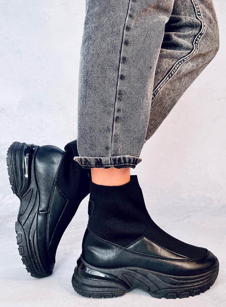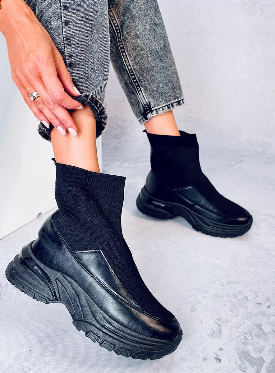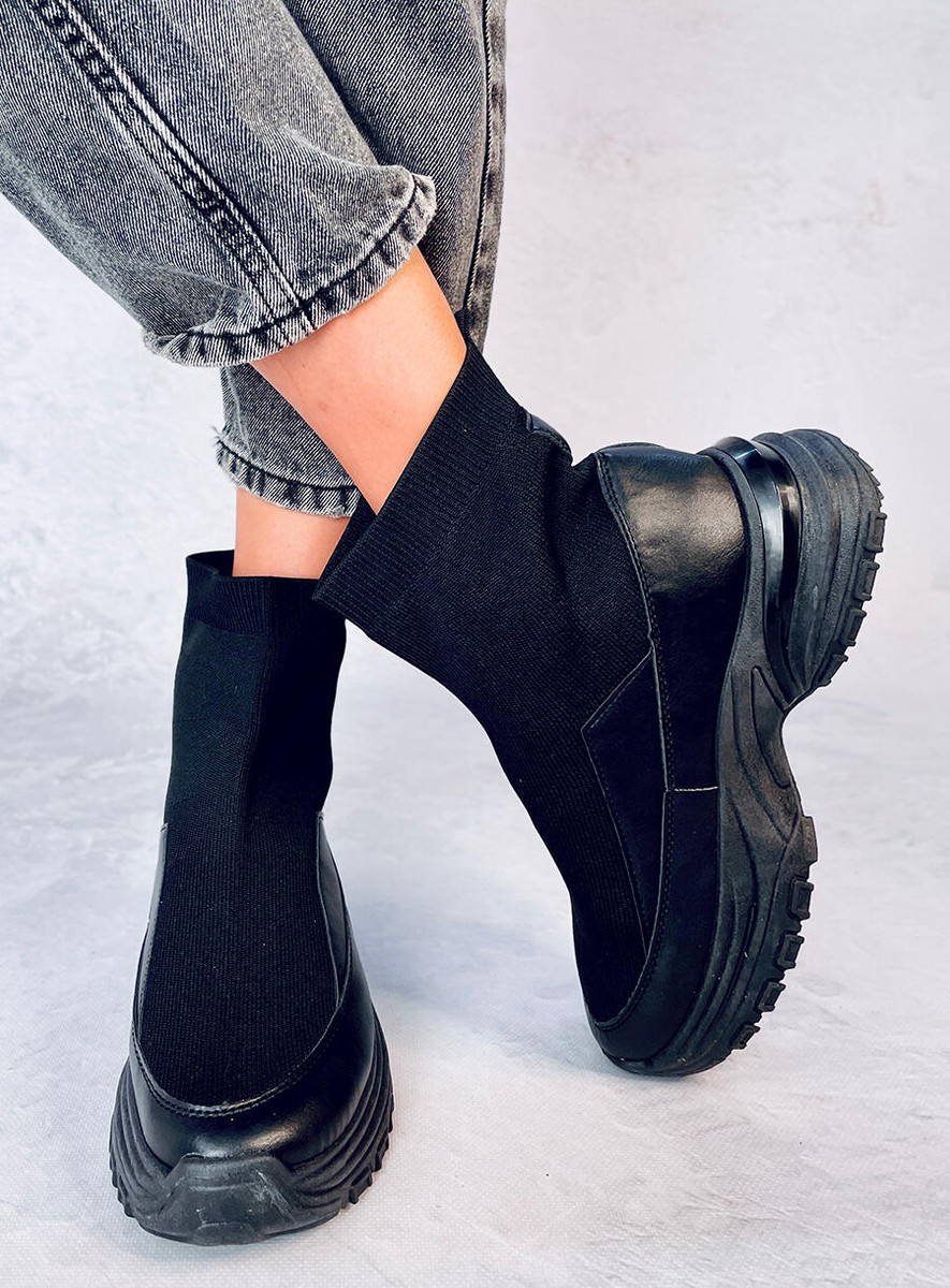 Wygodne buty sportowe damskie za kostkę. Cholewka wykonana jest z tkaniny, która w dotyku przypomina skarpetkę i idealnie dopasowuje się do stopy. Najmodniejsza, wysoka podeszwa zapewni komfort na każdym kroku. Koniecznie zabierz je ze sobą na siłownię, a treningi będą z pewnością przyjemniejsze : ) Wkładka wewnętrzna – tkanina.