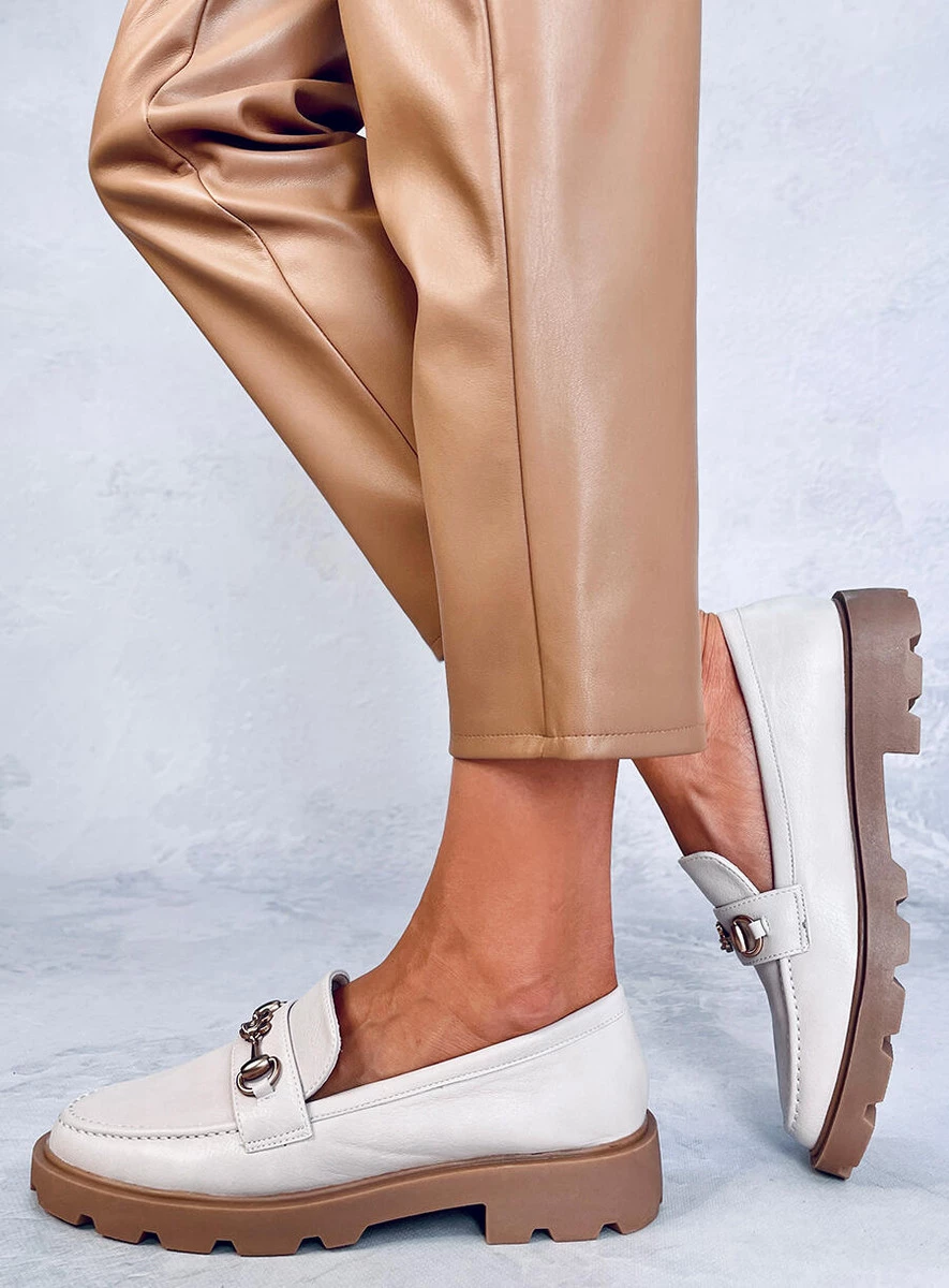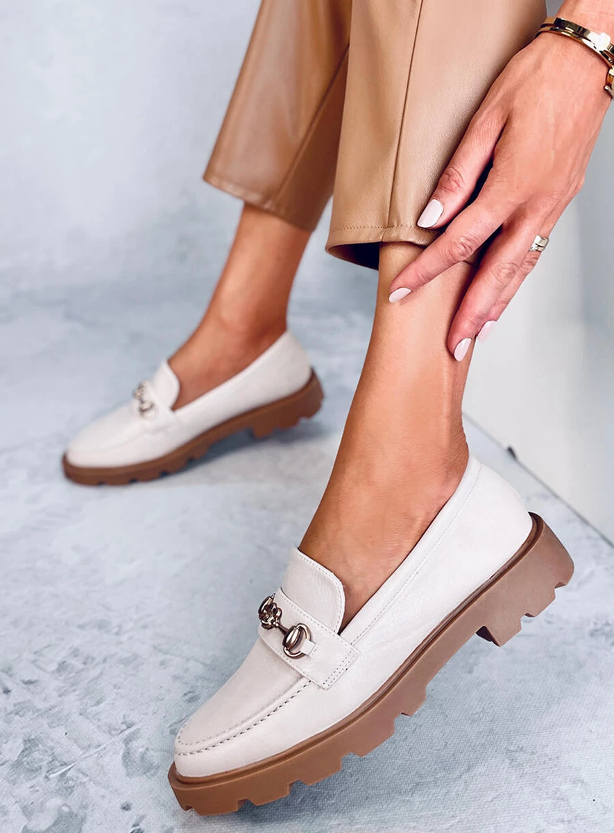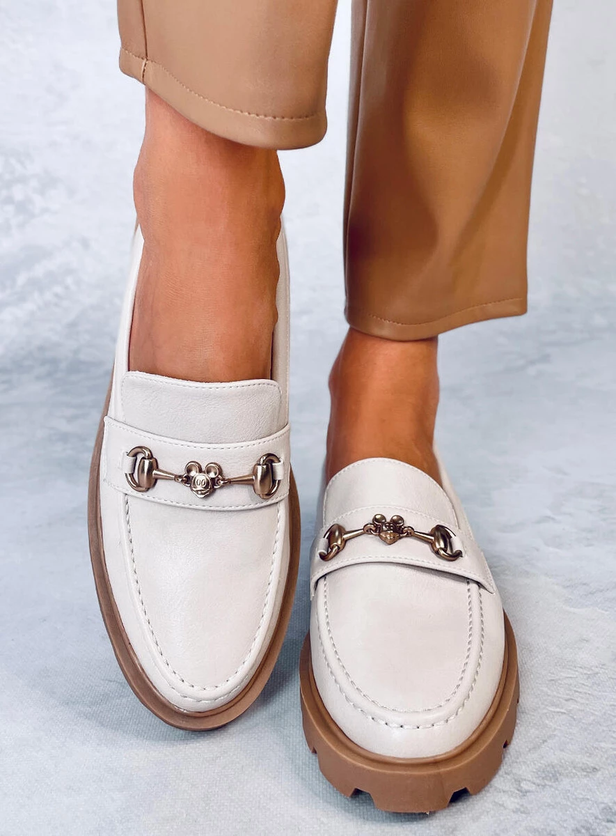 Licowe mokasyny damskie na grubej podeszwie. Mają ponadczasowy, zgrabny fason z klamerką ozdobioną myszką Miki - gwarantujemy, że skradną Wasze serca : ) Wewnątrz znajduje się miękka wkładka, która zapewni wygodę na każdym kroku! Materiał zewnętrzny – skóra ekologiczna.