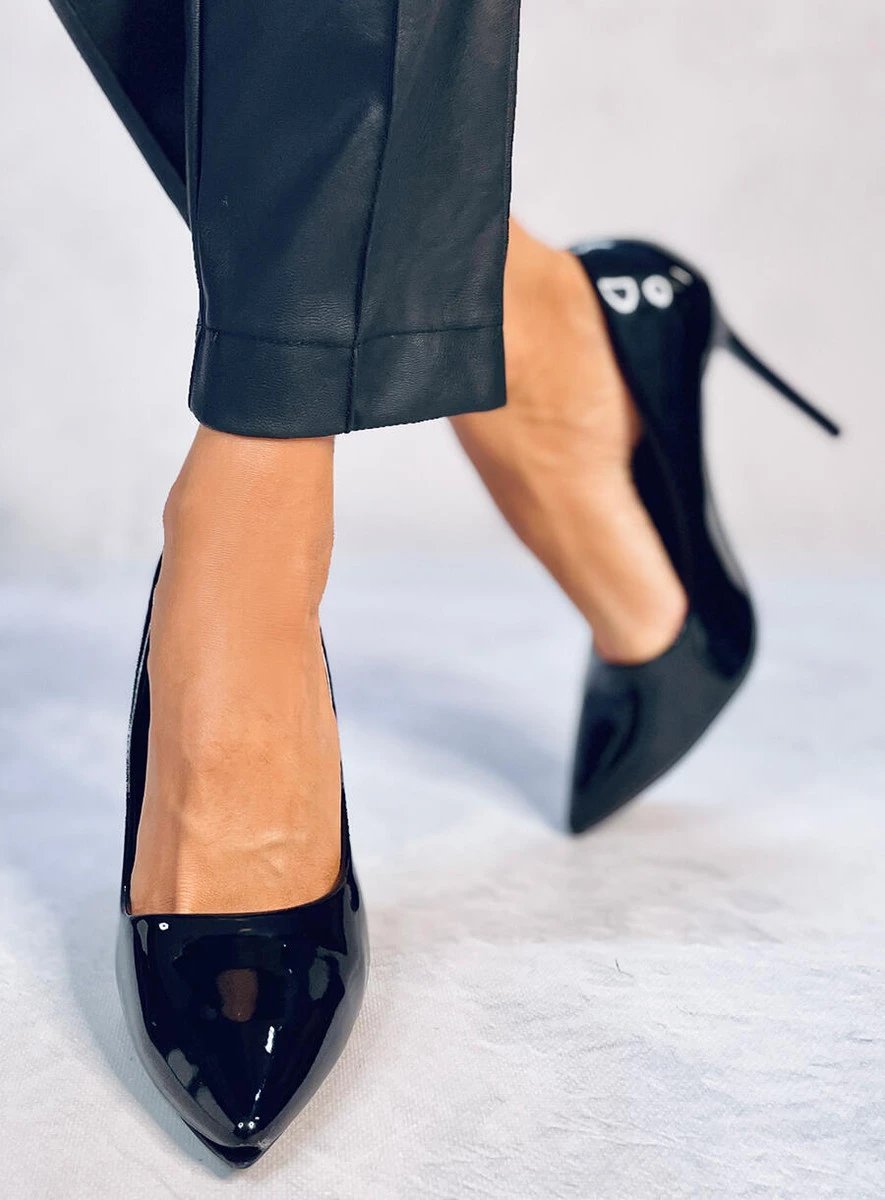 Lakierowane szpilki damskie. Model zachwyca klasycznym fasonem z noskami w delikatny szpic oraz smukłym obcasem o wysokości 11 cm, która zapewni obłędnie długie nogi! Efektowne lakierowane wykończenie to dawka ekstrawagancji… Idealne na wyjątkowe okazje (studniówkę, wesele, bal... ) i nie tylko : ) Materiał zewnętrzny – skóra ekologiczna lakierowana.