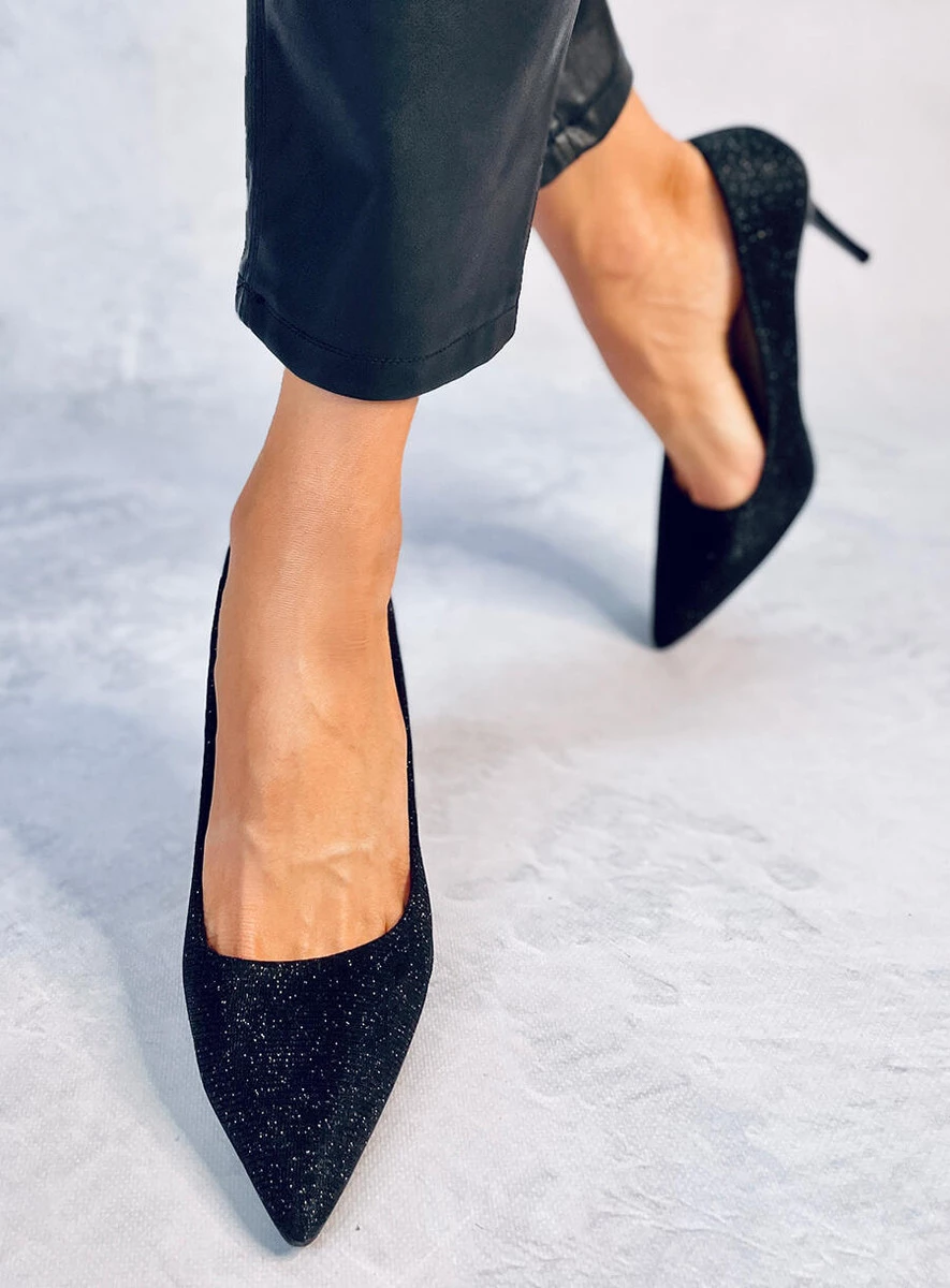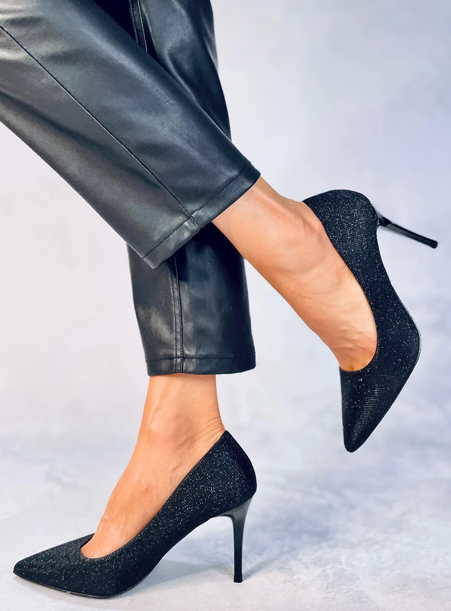 Opalizujące szpilki damskie. Jeśli lubisz błyszczeć to ten model o mieniącym się wykończeniu jest dla Ciebie! Zgrabny fason z noskami w delikatny szpic sprawia, że noga pięknie się w nich prezentuje, a obcas o wysokości 9 cm wysmukli sylwetkę. Idealne na specjalne okazje - studniówkę czy wesele... Materiał zewnętrzny - tkanina.