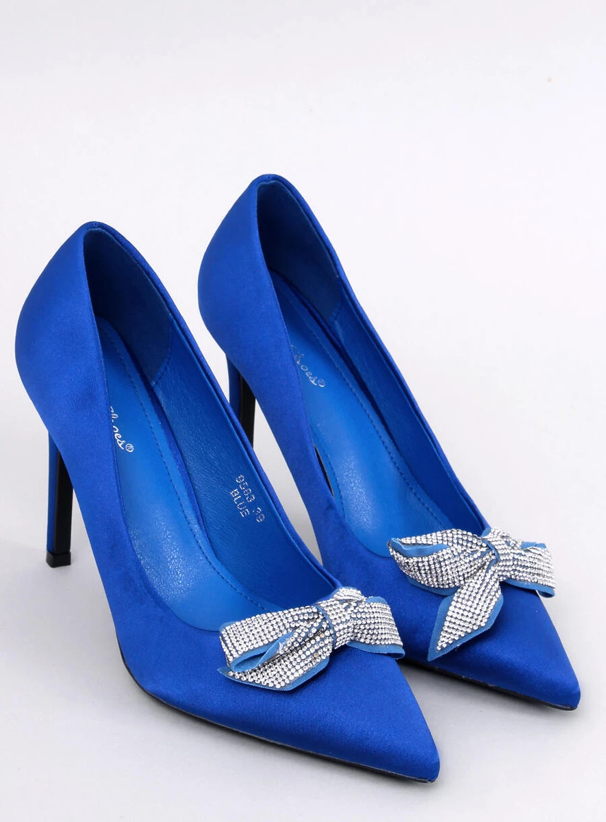 Satynowe czółenka damskie na szpilce. Kokarda z błyszczącymi cyrkoniami sprawi, że zakochacie się w nich od pierwszego wejrzenia : ) Obcas o wysokości 10 cm pięknie wysmukli Twoją sylwetkę, a satynowe wykończenie podkreśla ich wyjątkowy styl.... Idealny wybór na specjalne okazje - studniówkę, wesele czy bal. Materiał zewnętrzny – tkanina.