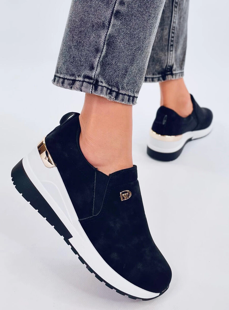 Półbuty damskie typu slip-on. Ten sportowy model na koturnie o wysokości 6,5 cm jest bardzo praktyczny. Przede wszystkim dbają o wygodę, sprawdzając się idealnie jako buty na co dzień. Przekonaj się o tym sama : ) Wykonane są ze skóry ekologicznej w matowym wykończeniu, a wnętrze wyścielone jest tkaniną.