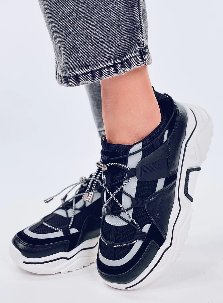 Buty sportowe damskie na wysokiej podeszwie. Ten model jest idealnym rozwiązaniem dla osób, które cenią sobie wygodę, a przy tym podążają za trendami modowymi. Oryginalne sznurowanie oraz różnorodne dodatki przyciągają wzrok. Dzięki nim Twoje stylizacje nabiorą charakteru! Wnętrze butów wyścielone jest tkaniną. Materiał zewnętrzny – skóra ekologiczna + tkanina.