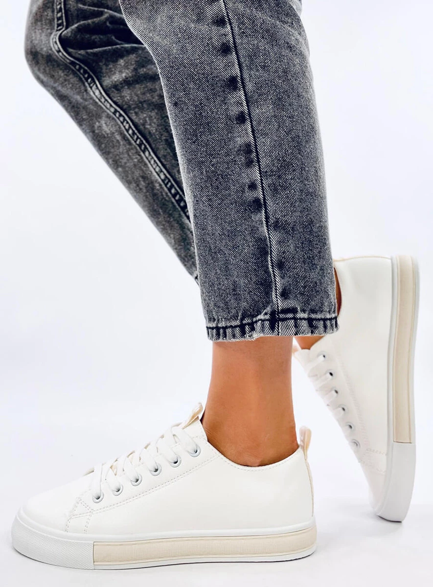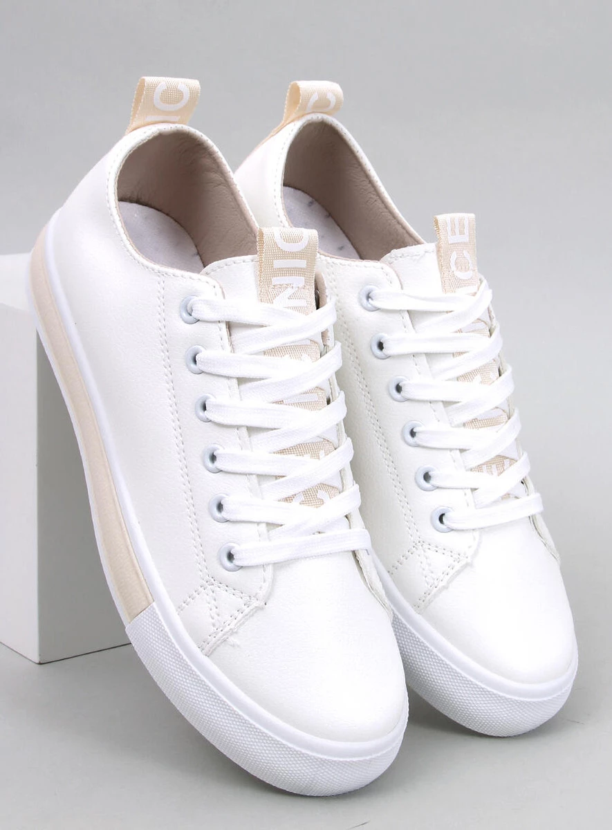 Trampki damskie sznurowane. Model o klasycznym designie z kontrastującymi dodatkami musi obowiązkowo znaleźć się w każdej szafie : ) W tych butach będziesz wyglądała i czuła się świetnie - przekonaj się o tym sama : ) Wykonane są z bardzo miłej w dotyku skóry ekologicznej.
