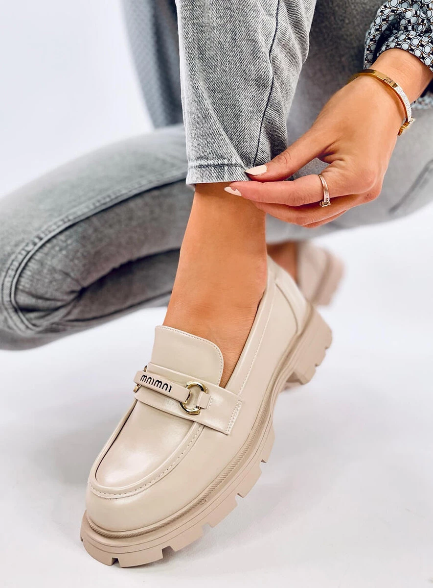 Licowe mokasyny damskie na platformie. Najmodniejsza, wysoka podeszwa oraz stylowa klamerka idealnie wpisują się w trendy tego sezonu. To buty z charakterem - nie może ich zabraknąć w Twojej garderobie : ) Materiał zewnętrzny – skóra ekologiczna.