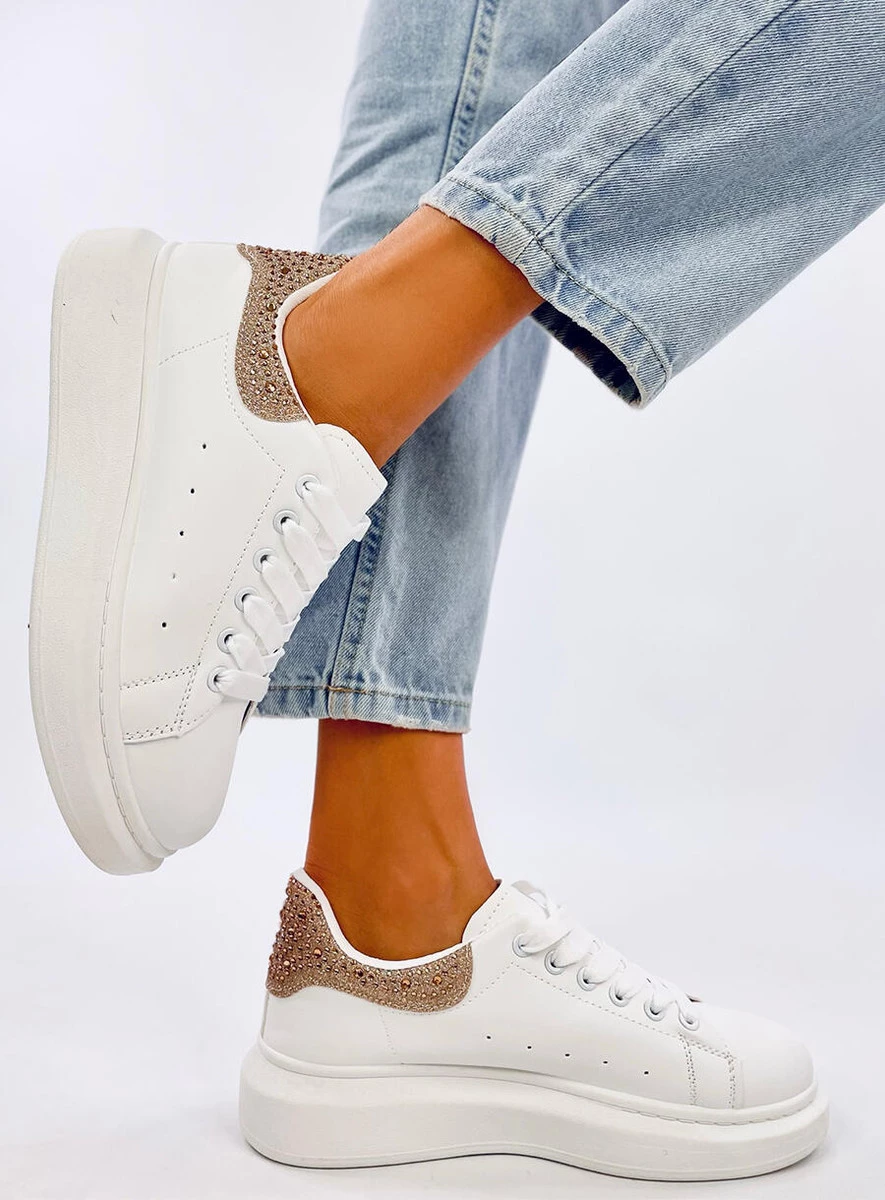 Sneakersy na platformie z cyrkoniami PARKSS WHITE/GOLD