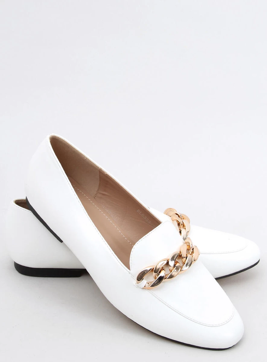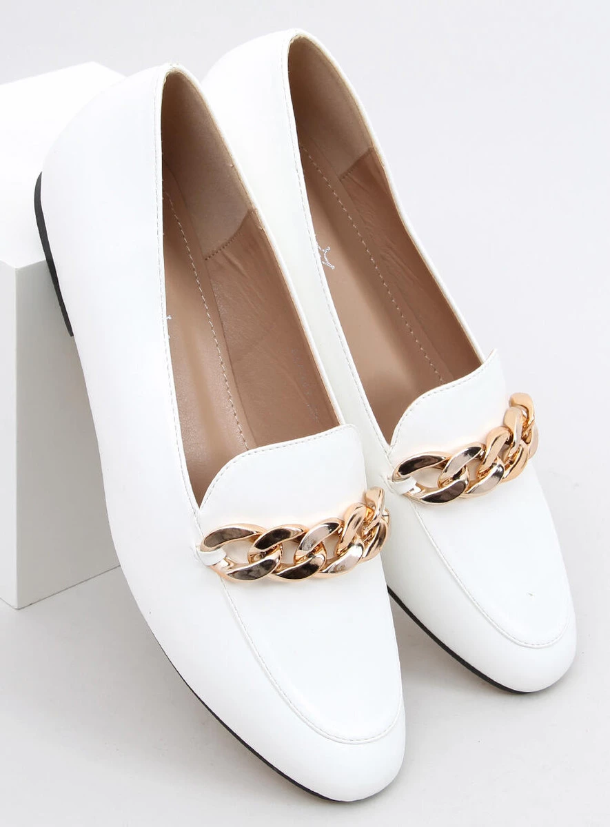 Licowe mokasyny damskie. Ten wyjątkowy model ma ponadczasowy fason z najmodniejszym dodatkiem - łańcuchem. To buty, które wyglądają gustownie, a dodatkowo są bardzo wygodne. Daj im szansę podbić swoją garderobę : ) Materiał zewnętrzny – skóra ekologiczna.