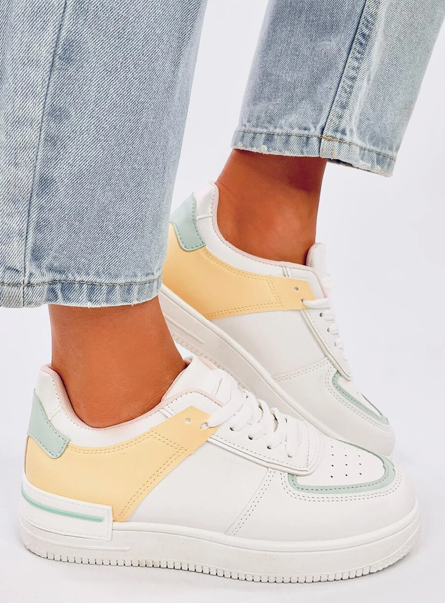Sznurowane buty sportowe damskie. Ten wyjątkowy model o klasycznym fasonie z kolorowymi wstawkami to absolutny must have! Nie dość, że świetnie wyglądają to jeszcze są niesamowicie wygodne : ) Wnętrze butów wyścielone jest tkaniną. Materiał zewnętrzny – skóra ekologiczna.