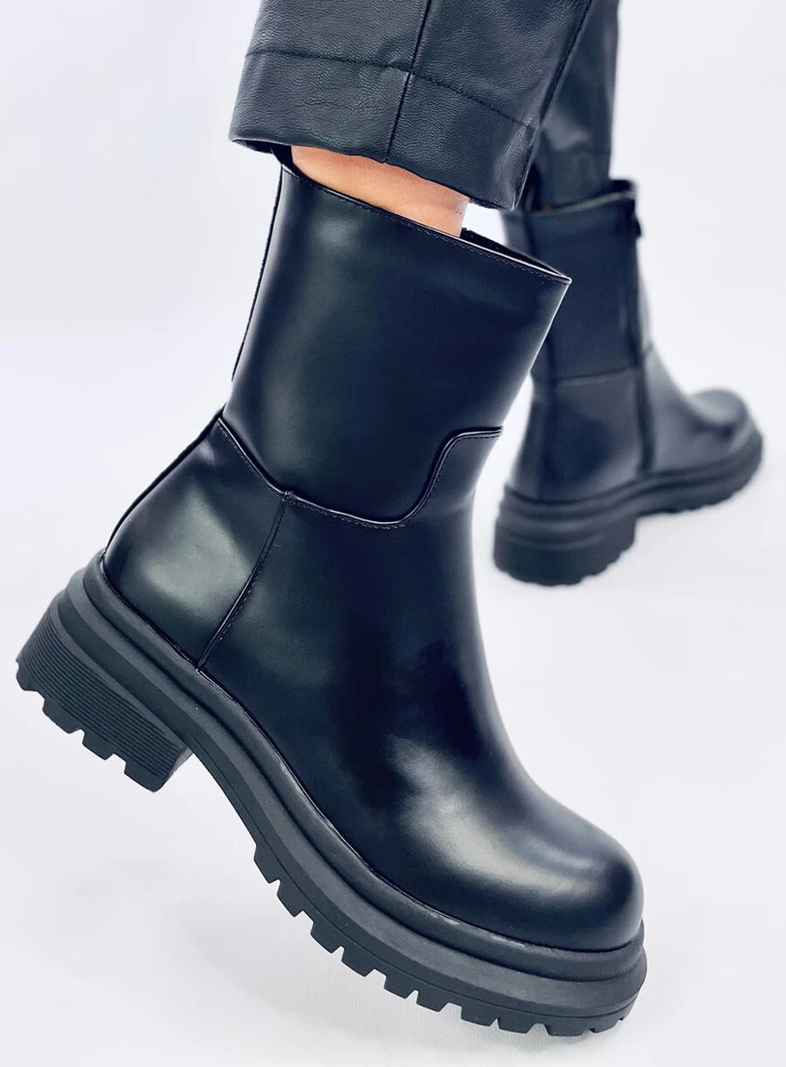 Militarne botki damskie na protektorze. Ten model w efektownym, matowym wykończeniu to modowy must have! Wygodne zapięcie na suwak z boku cholewki zapewnia komfortowe zakładanie. Zamów je już dziś! Wykonane są ze skóry ekologicznej, na piankowym podszyciu.