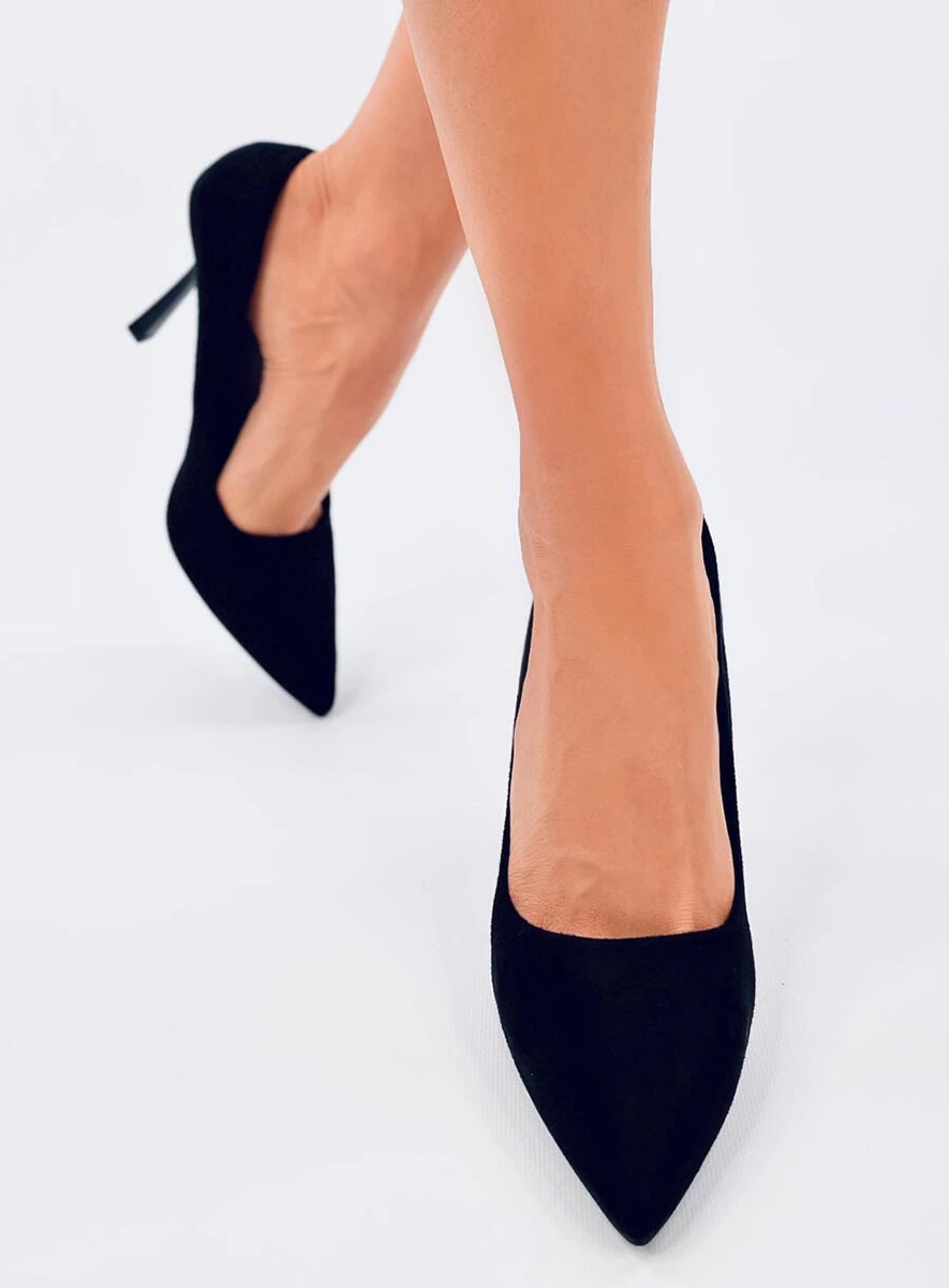 Zamszowe czółenka damskie na szpilce o wysokości 11 cm. Buty cechuje ponadczasowy fason ze zgrabnymi, zwężającymi się noskami. Pięknie prezentują się na nodze... Przekonaj się sama, że zasługują, by znaleźć się również w Twojej garderobie! Materiał zewnętrzny - zamsz ekologiczny.