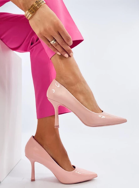 Lakierowane czółenka damskie na obcasie. Model zachwyca klasycznym fasonem z noskami w delikatny szpic oraz szpilką o wysokości 9 cm, która wysmukli sylwetkę. Efektowne lakierowane wykończenie to dawka ekstrawagancji… Idealne na specjalne okazje (studniówkę, wesele, bal... ) i nie tylko : ) Materiał zewnętrzny – skóra ekologiczna lakierowana.