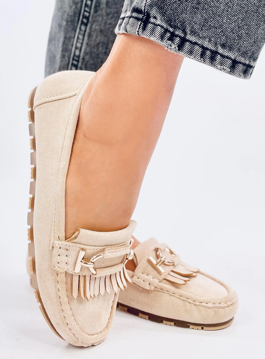 Klasyczne mokasyny damskie. Jeśli cenisz sobie styl to koniecznie wybierz ten ponadczasowy model w zamszowym wykończeniu. Subtelna ozdoba z frędzelkami to ich znak charakterystyczny. Miękka wkładka wewnętrzna ze skóry naturalnej sprawi, że cały dzień będziesz czuć się komfortowo. Materiał zewnętrzny – zamsz ekologiczny.