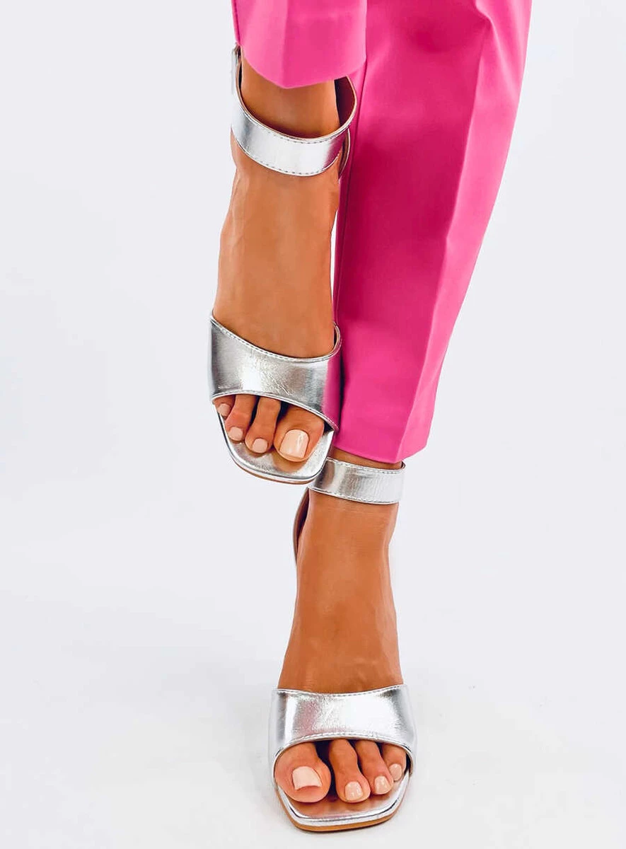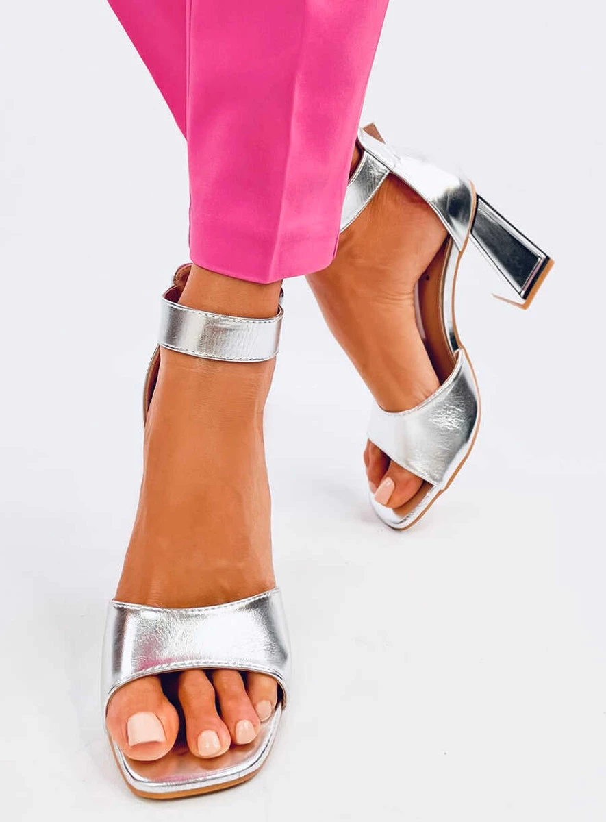 Licowe sandałki damskie obcasie o wysokości 9 cm. Klasyczny fason w połączeniu z najmodniejszymi kwadratowymi noskami oraz złotemu wykończeniu obcasa doda stylu każdej stylizacji... Regulowane zapięcie pięknie podkreśli kostkę, a szeroki obcas zapewni wygodę na każdym kroku. Po prostu musisz je mieć! Materiał zewnętrzny – skóra ekologiczna.