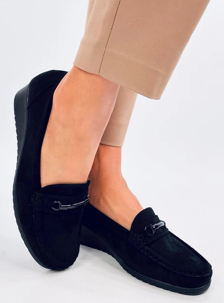 Zamszowe mokasyny damskie na koturnie o wysokości 4 cm. Ich klasyczny fason z subtelną klamerką nigdy nie wyjdzie z mody! Niewątpliwą zaletą tych butów jest mięciutka wkładka wewnętrzna z poduszeczką. To doskonałe buty na co dzień! Materiał zewnętrzny - zamsz ekologiczny.