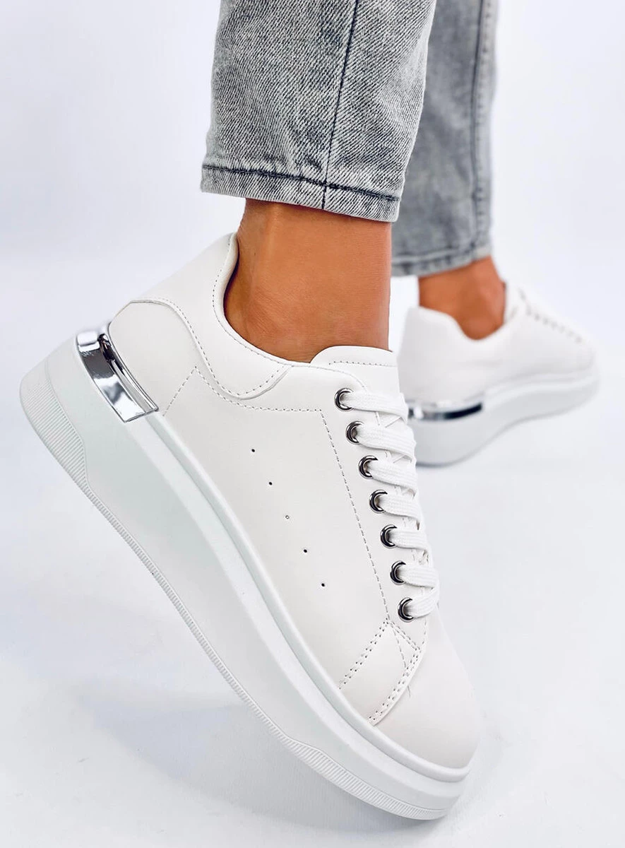 Sznurowane buty sportowe damskie - sneakersy. Ten ponadczasowy fason to wybór modny, sprawdzony i niezastąpiony! Buty na wysokiej podeszwie zapewnią wygodę na każdym kroku, a przy tym dodadzą centymetrów : ) Materiał zewnętrzny - skóra ekologiczna.