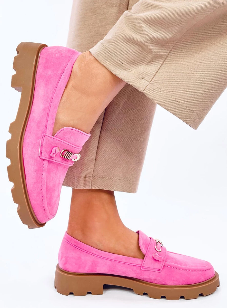 Zamszowe mokasyny damskie na wysokiej podeszwie. Ten wyjątkowo zgrabny model z gustowną aplikacją to najlepszy wybór dla miłośniczek aktualnych trendów! Poczujesz się w nich modnie i komfortowo (mają mięciutką wkładkę wewnętrzną) - z pewnością spełnią Twoje oczekiwania : ) Materiał zewnętrzny – zamsz ekologiczny.