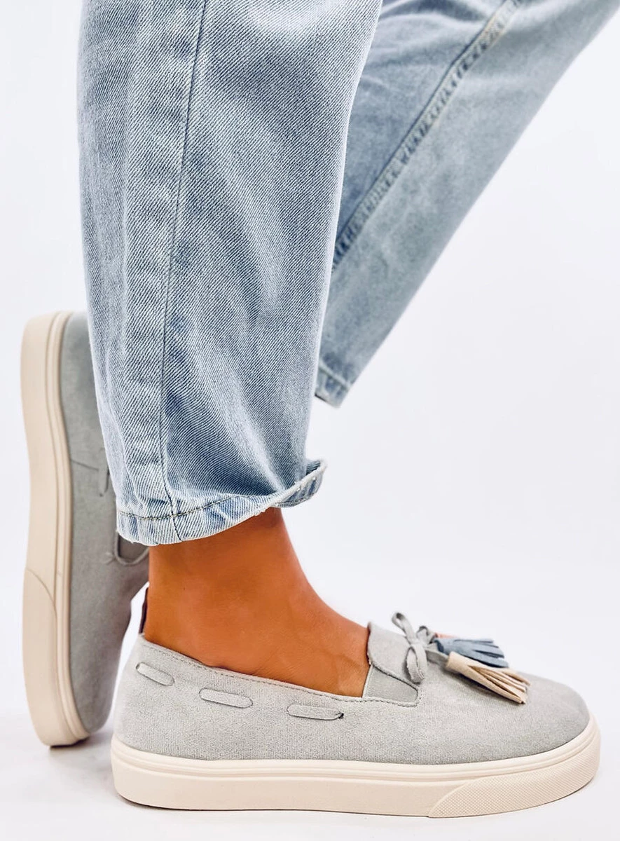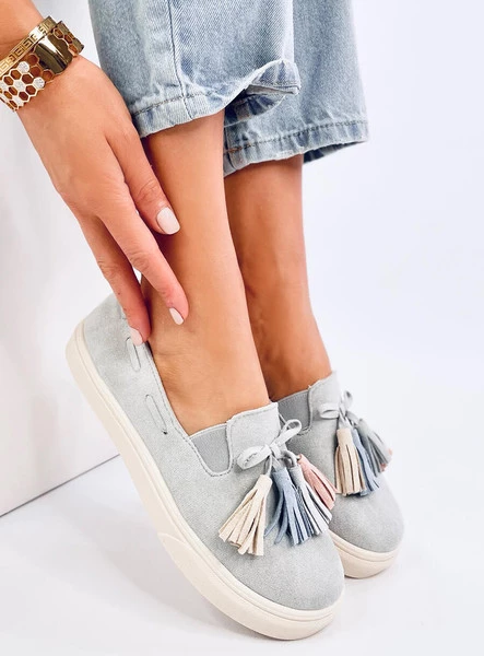 Wiosenne trampki damskie typu slip-on. Jeśli jesteś wielbicielką stylu boho i chcesz przyciągać spojrzenia to wybierz ten wyjątkowy model z kolorowymi frędzelkami. Nie dość, że świetnie wyglądają to jeszcze są mega wygodne! Wykonane są z zamszu ekologicznego, a wnętrze wyścielone jest tkaniną (kolor biały - skóra ekologiczna).