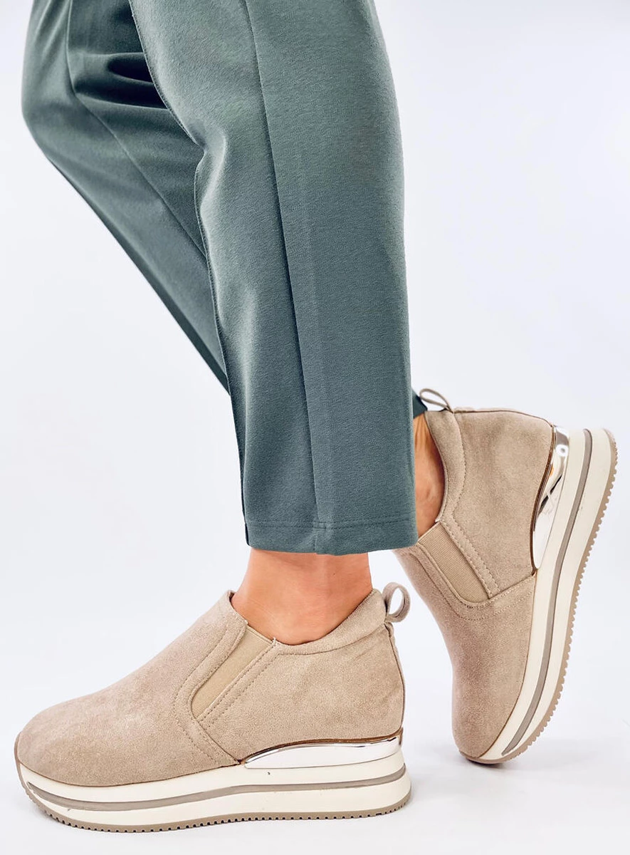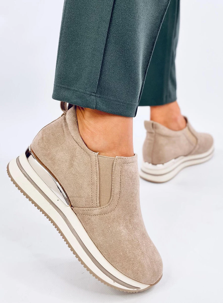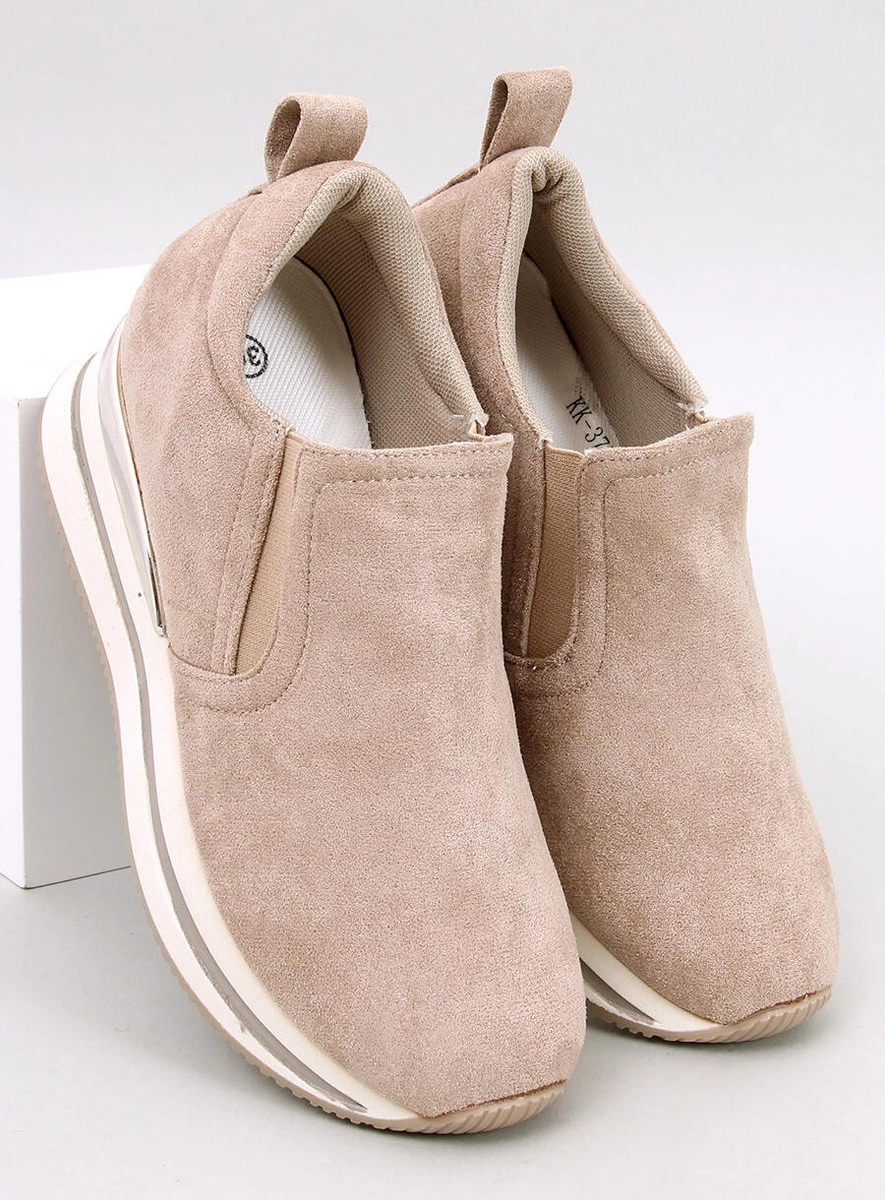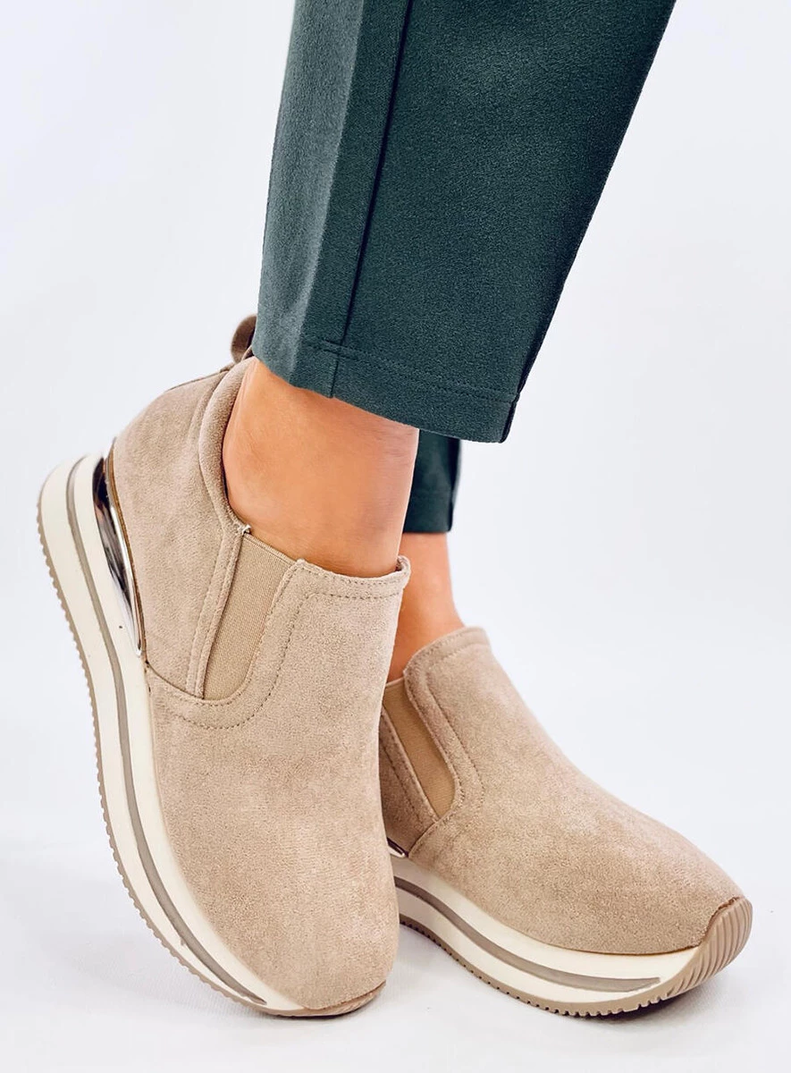 Zamszowe półbuty damskie typu slip-on. Ten sportowy krój na ukrytym koturnie jest bardzo praktyczny! Przede wszystkim dbają o wygodę, sprawdzając się idealnie jako buty na co dzień. Nie czekaj i zamów je już teraz! Wykonane są z zamszu ekologicznego, a wnętrze wyścielone jest tkaniną.