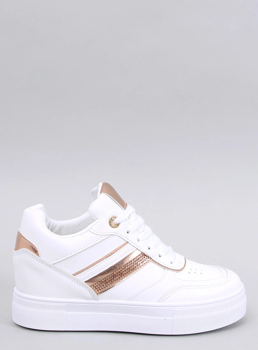 Buty sportowe - sneakersy damskie na koturnie o wysokości 7 cm. Ten wyjątkowy model z metalicznymi wstawkami i błyszczącymi cyrkoniami na pewno wpadnie Ci w oko : ) W tych butach będziesz wyglądała i czuła się świetnie! Materiał zewnętrzny – skóra ekologiczna.